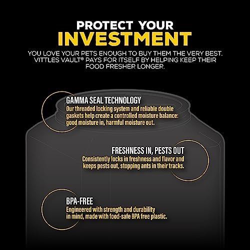 - SAY GOODBYE TO PESKY PESTS: In addition to locking in flavor and pet food smells, Gamma Seal Technology keeps ants and other pests out of this pet food storage container. Vittles Vault is perfect for storing birdseed, cat and dog kibble, goat feed, and more dry food.