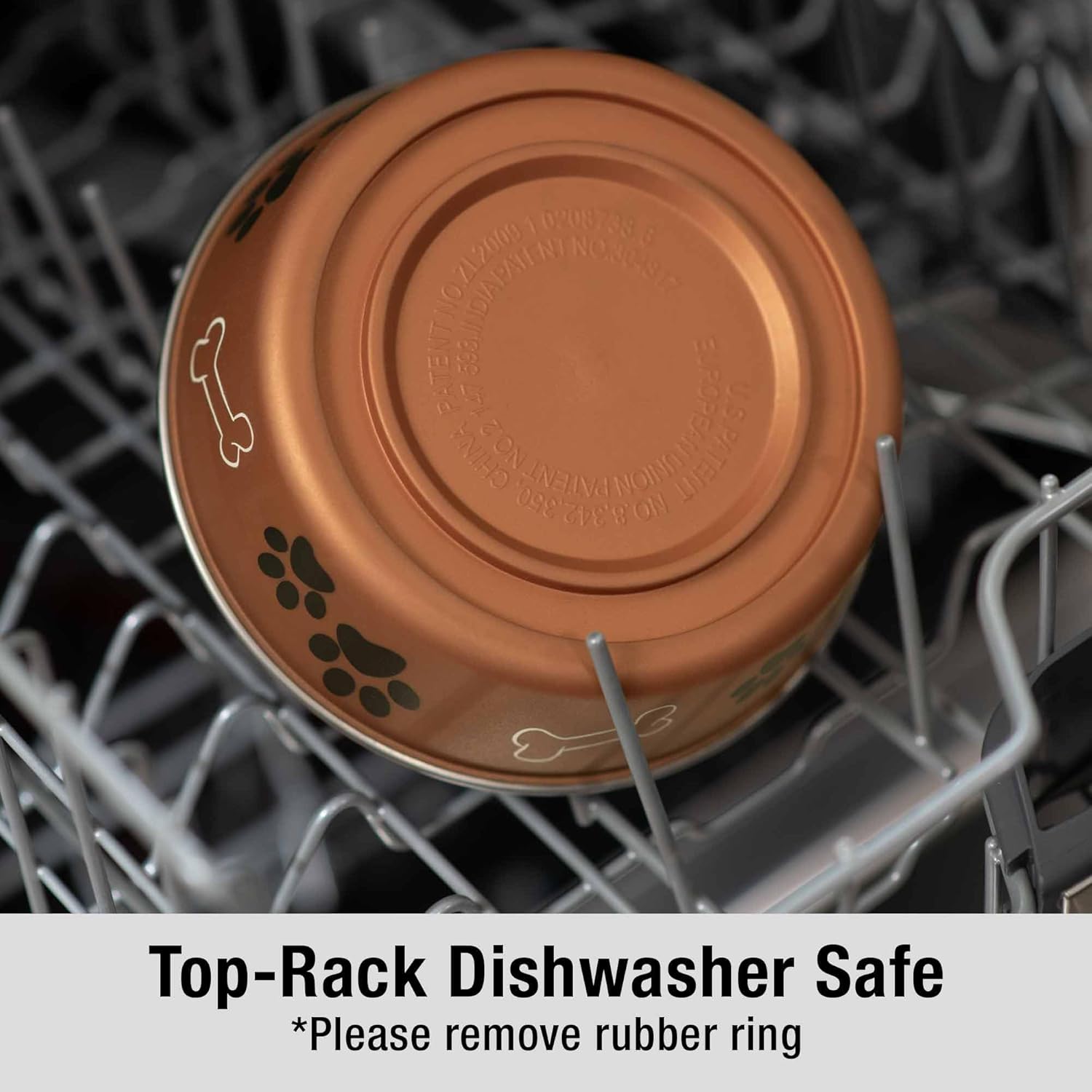 - STAINLESS STEEL & DURABLE - Bella Bowls features a stainless steel design with a poly-resin exterior great for dog food mat, which makes them dish washer safe and easy to keep clean and hygienic. Perfect cat food bowl or dog water bowl for home & travel.