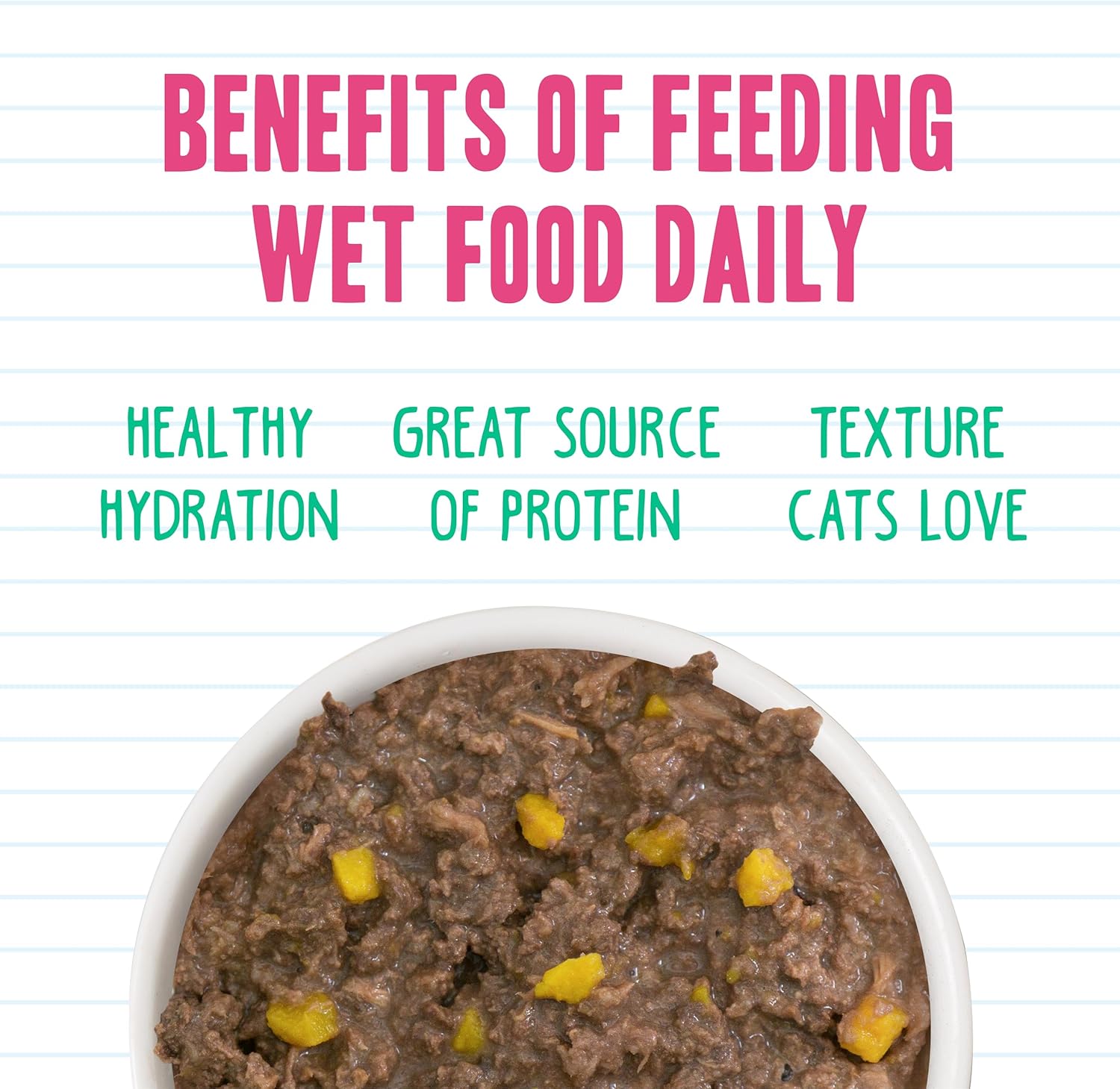 - Hydration Focused Recipes. Moisture rich goodness to fuel your cat’s playful purrs and pounces
