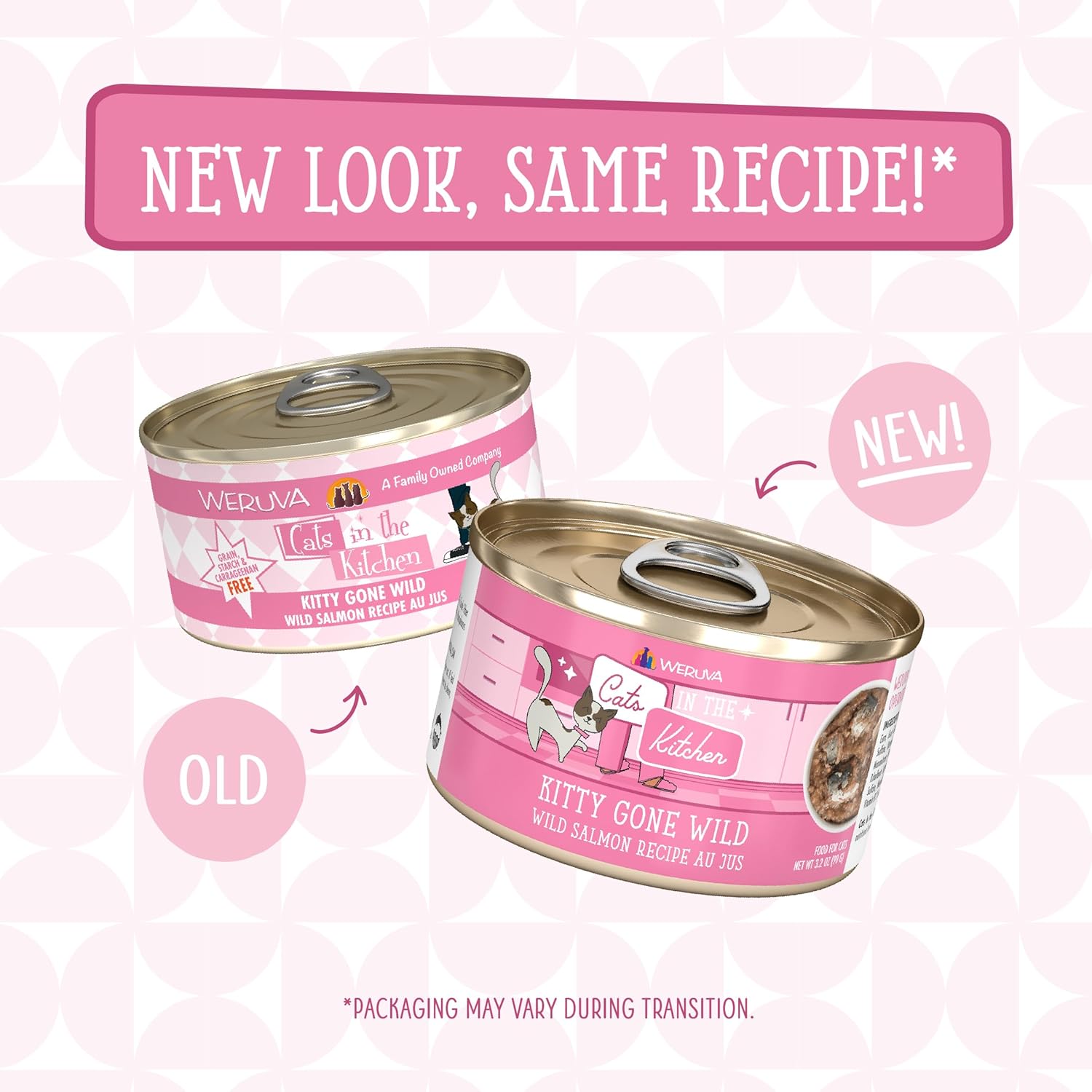 - Kitty Gone Wild! (3.2oz cans, pack of 24) Featuring wild salmon, tuna, sardine, and mackerel in a delicious Au Jus. An all natural blend of premium seafood proteins that cat’s can't resist!