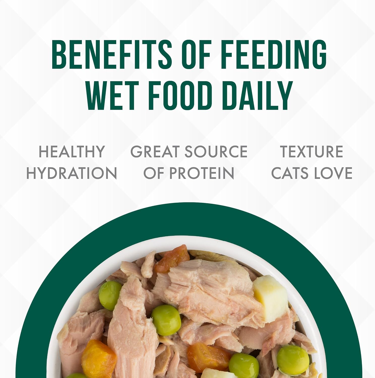 - Mediterranean Harvest (3oz, Pack of 24) Featuring chunks of wild-caught, white meat tuna, potato, peas, and tomato in gravy.