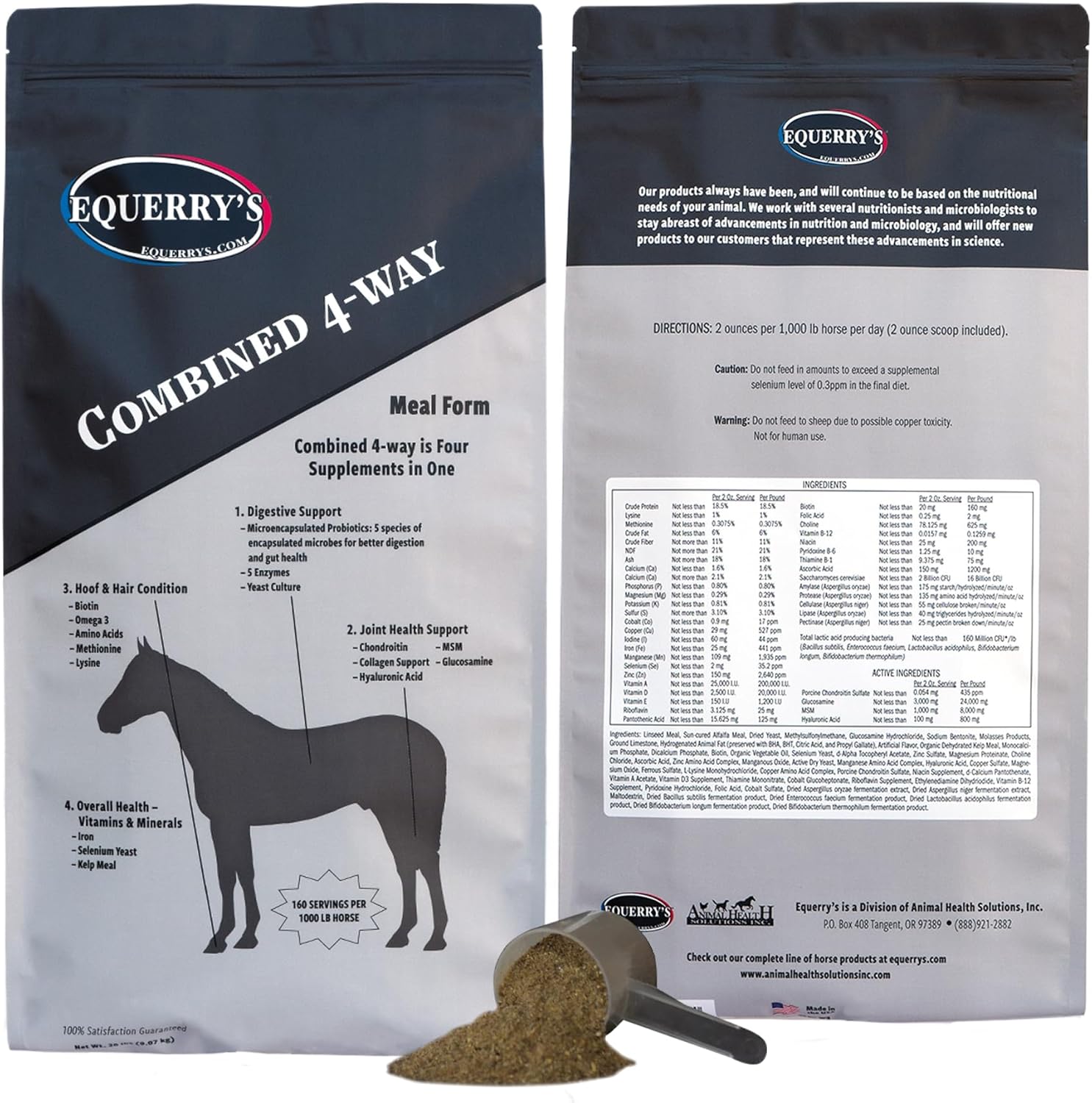 Equerry's Combined RX 4 Way | Equine Nutritional Support | Complete Formula | Digestive and Joint Support | Hoof & Hair | Probiotics Vitamins & Minerals 160 Feedings, 20lb.