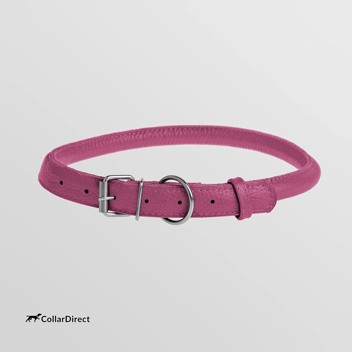 CollarDirect Rolled Leather Dog Collar, Soft Padded Round Puppy Collar, Handmade Genuine Leather Collar Dog Small Large Cat Collars 13 Colors (15-19 Inch, Pink Textured)