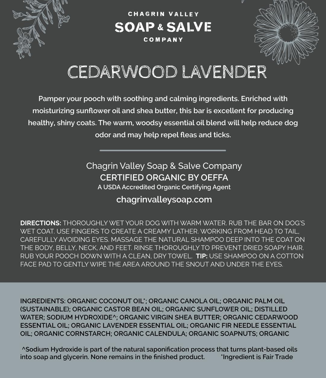 Chagrin Valley Soap & Salve Certified Organic Dog Shampoo and Conditioner - Dog Shampoo Itchy Skin Relief and Puppy Essentials - Natural Handmade Cedarwood Lavender, 3.8 oz Bar Soap