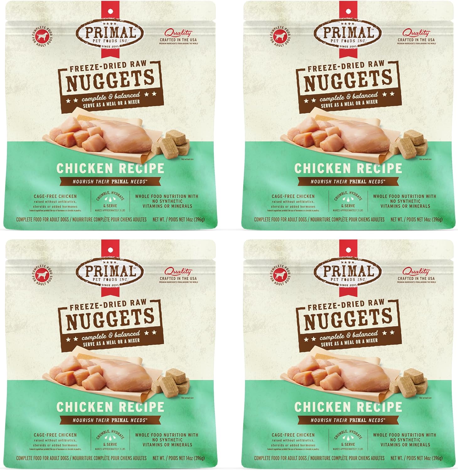 Primal Freeze Dried Dog Food Nuggets, Chicken, Complete & Balanced Meal, Also Use as Topper or Treat, Premium, Healthy, Grain Free, High Protein Raw Dog Food, 14 oz (Pack of 4)
