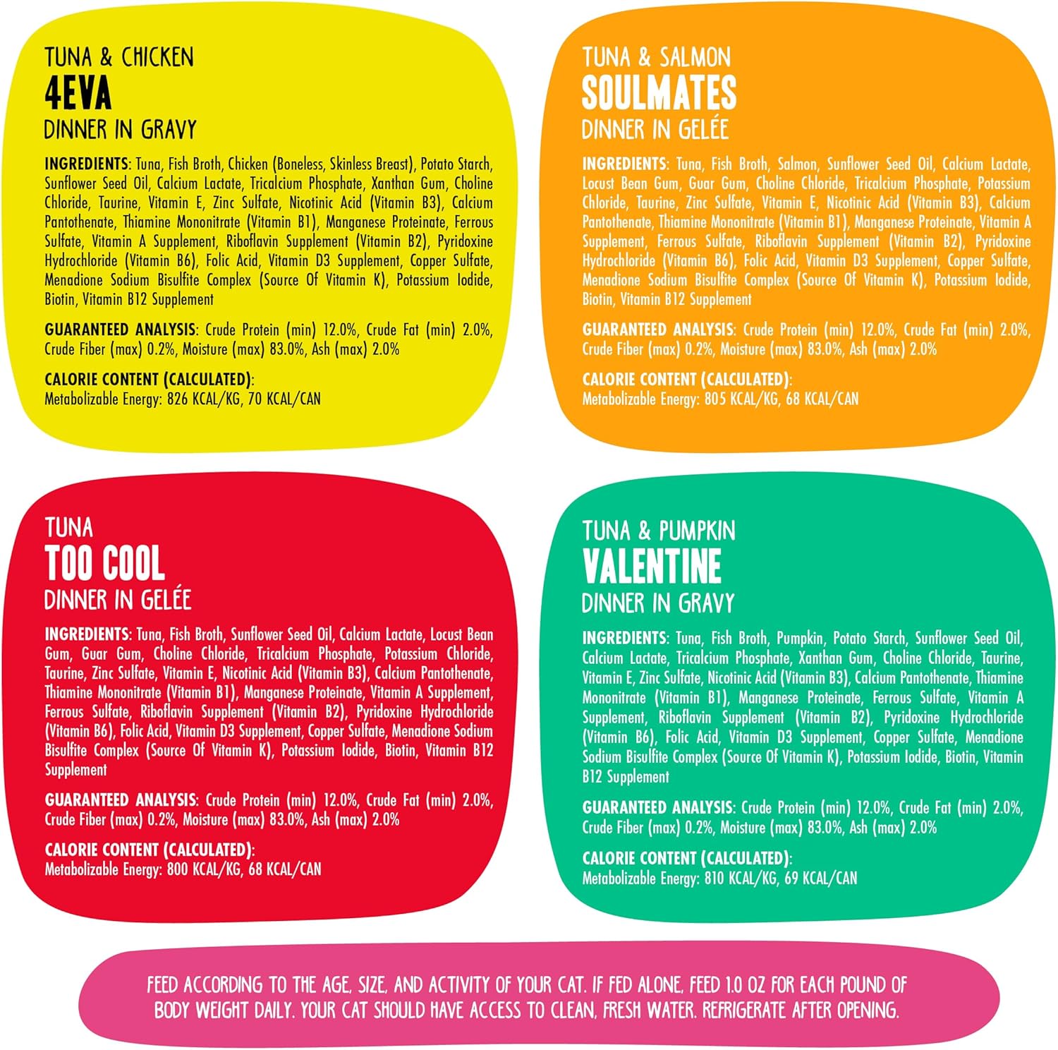 - Batch O Besties Variety Pack, Four of our most popular recipes with wild caught skipjack tuna in a delicious gravy and gelee, 3oz Can, Pack of 12
