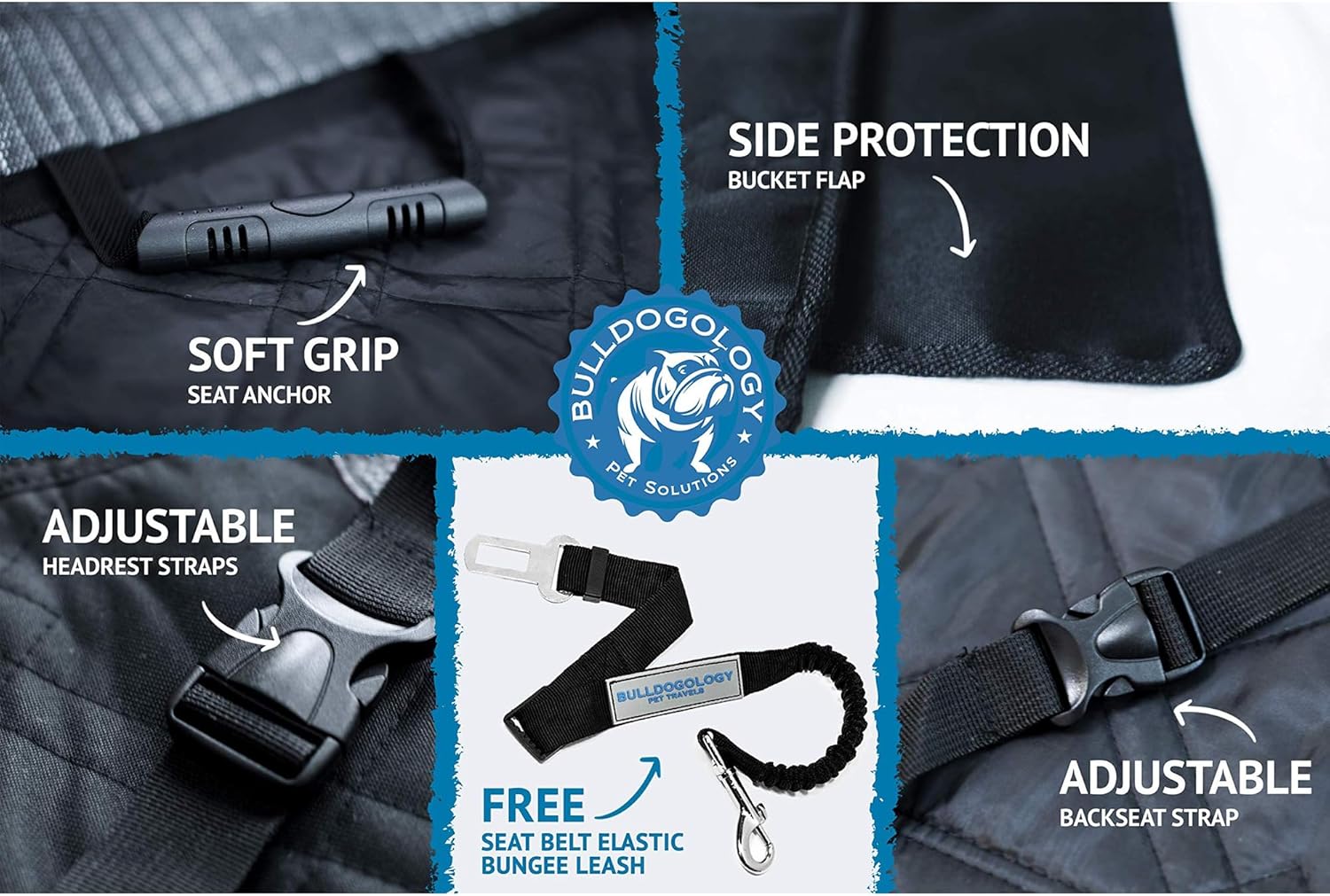 - Each Bulldogology front seat cover for dogs offers the highest-quality materials available, giving you a peace of mind with our No-Hassle 100% Satisfaction. This covers any defects and craftsmanship. Expect only the best! Enjoy your dog travel without the stress.