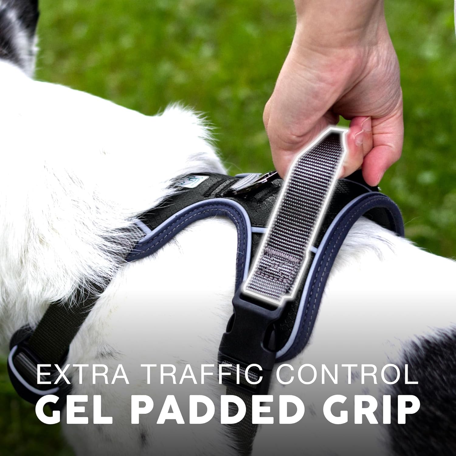 - BUILT TO KEEP YOUR DOG SAFE - Made from heavy duty Oxford and Military Grade Nylon materials, the harness features reflective strips, a Gel handle for Extra large dogs no pull has a pulling strength of up to 750 LBS! Enjoy the Front & Back leash attachments and soft padding to protect your dog's trachea.