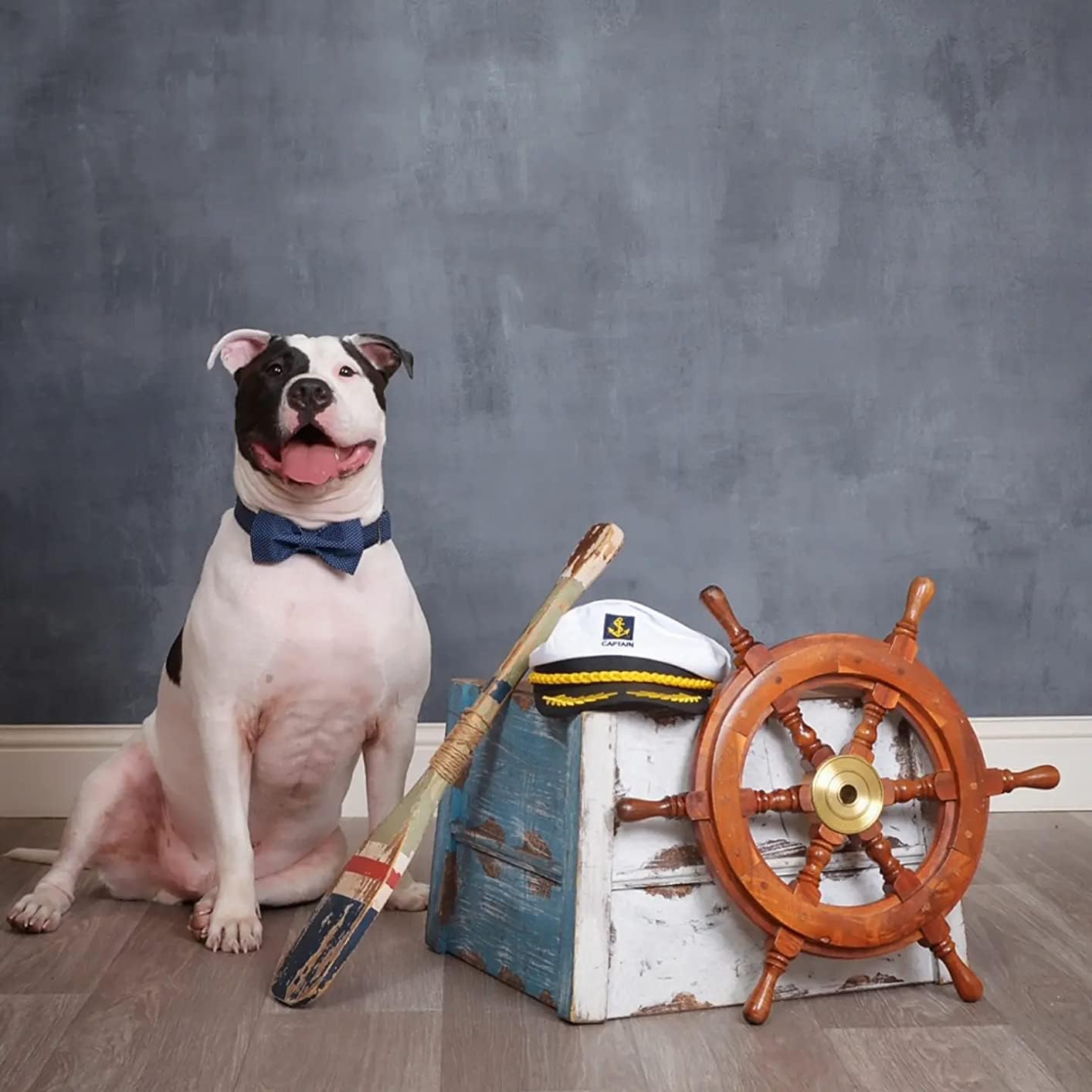 Lionet Paws Boy Dog Collar with Bowtie, Comfortable Adjustable Cute Navy Blue Bow Tie Collar for Male Puppies and Cats Gift, XS, Neck 8-12 inches