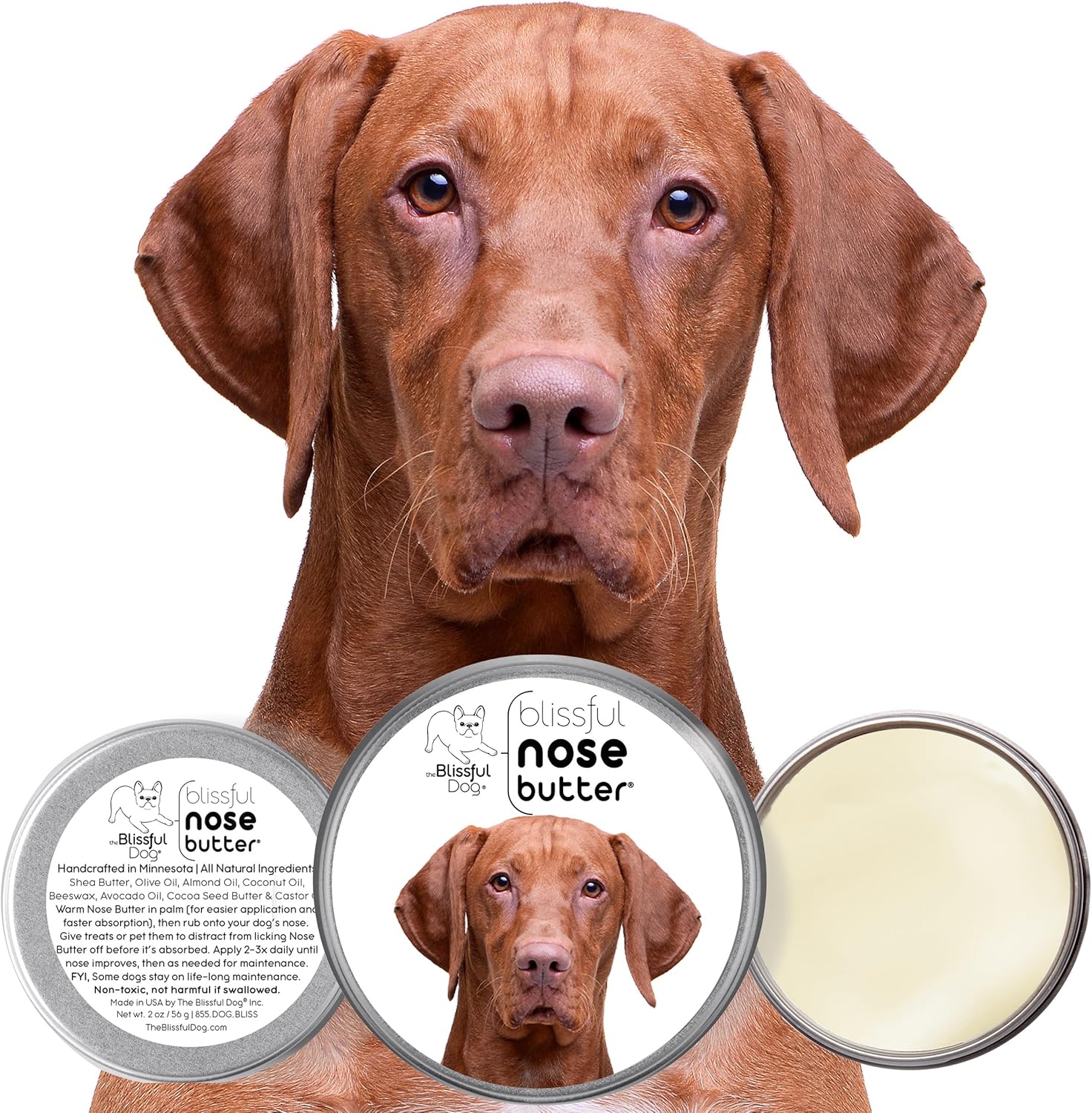 The Blissful Dog Vizsla Nose Butter for Dry, Cracked Skin, Lick-Safe Dog Nose Balm with Moisturizing Shea Butter, Almond, Olive, and Essential Oils, Pet Supplies, Uncented, 2 oz.