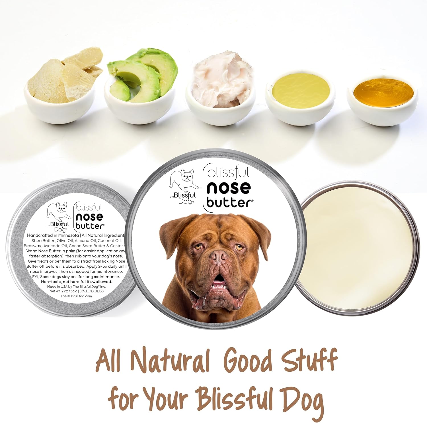 The Blissful Dog Dogue De Bordeaux Nose Butter, Versatile Dog Nose Balm for Dry Nose, Handcrafted Nose Moisturizer, Easy-to-Apply Dog Essentials, Unscented, 2 oz.