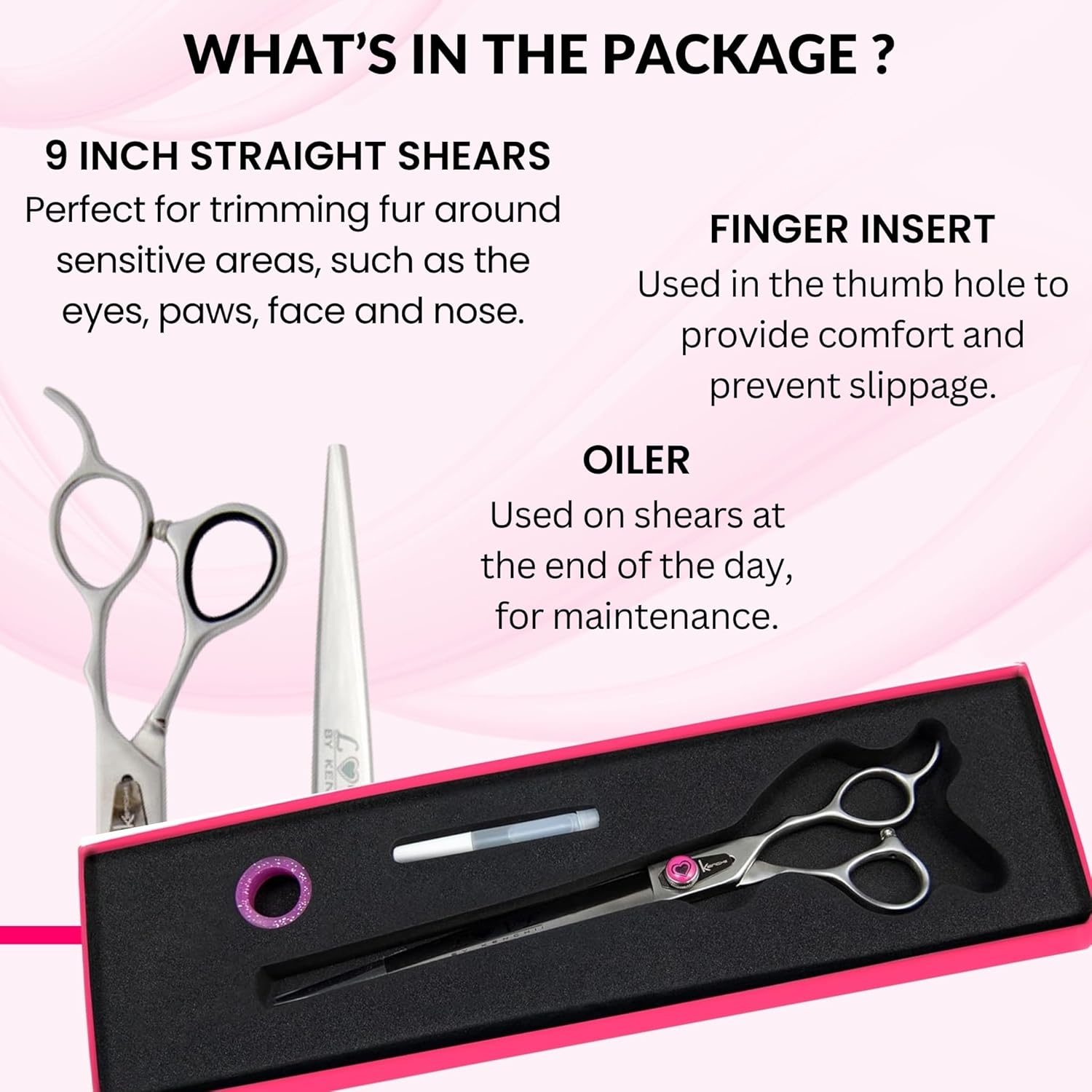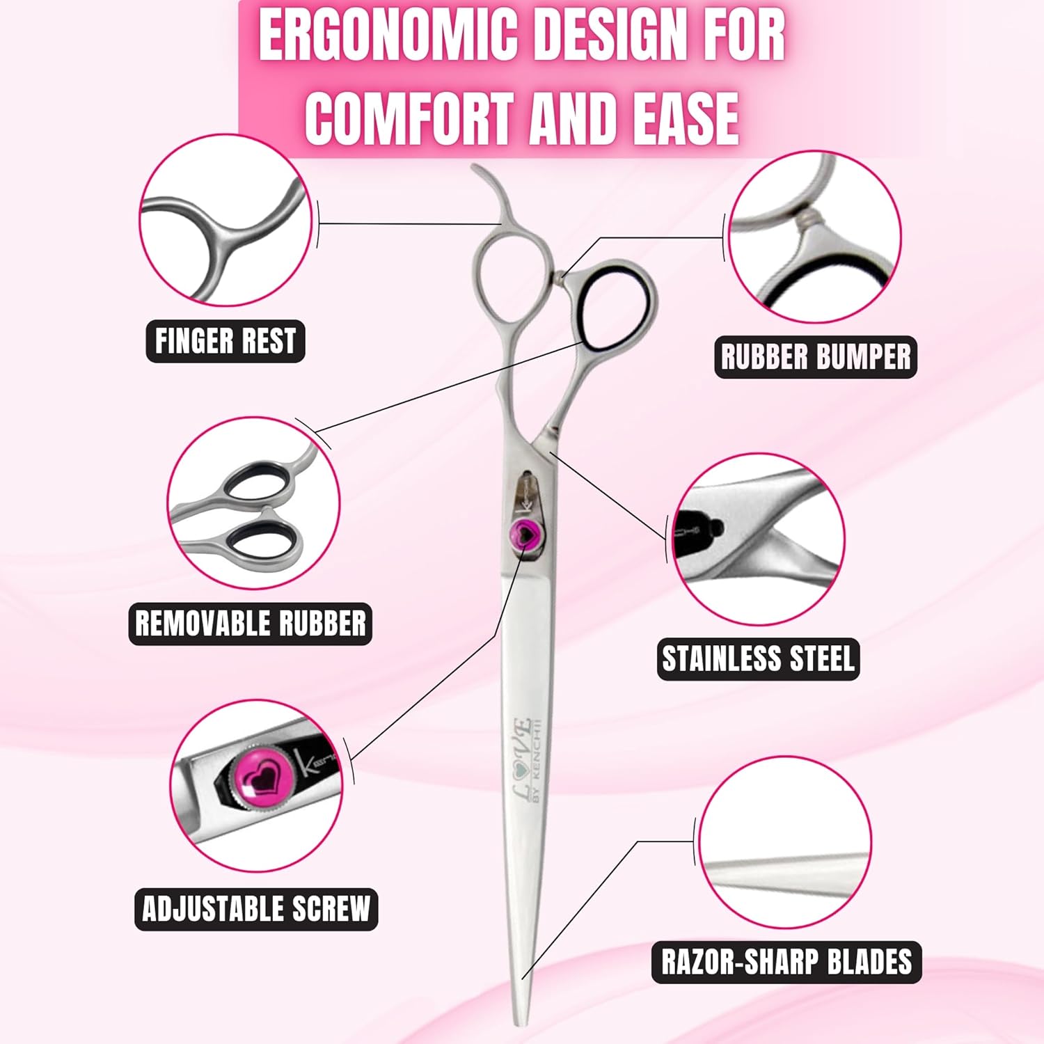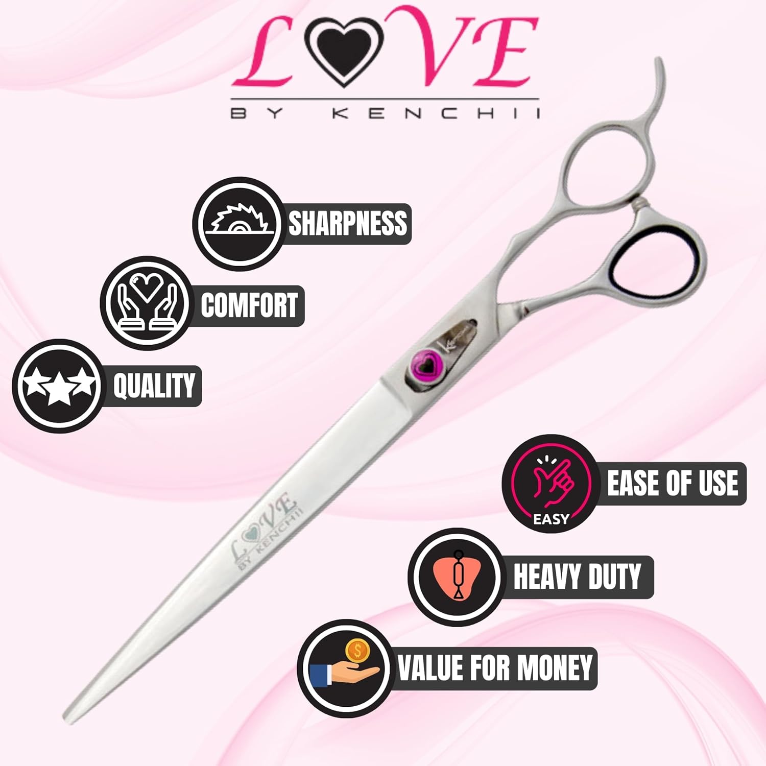 Kenchii Love Dog Grooming Scissors, 9 Inch Straight Shears, Dog Scissors for Grooming, Professional Pet Grooming Scissors, Heavy Duty, Durable and Sharp