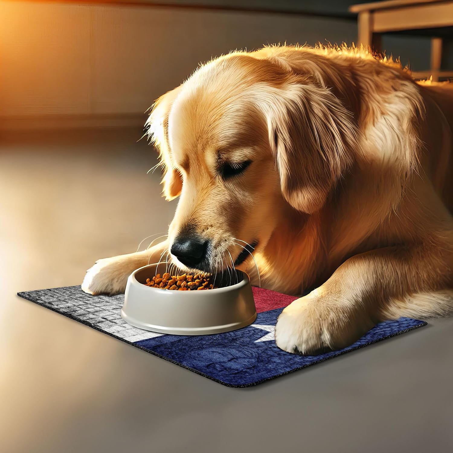 Lunarable Western Pet Mat for Food and Water, Texas State Flag Painted on Crocodile Snake Skin Patriotic Emblem Image, Non-Slip Rubber Mat for Dogs and Cats, 18" X 12", White Blue