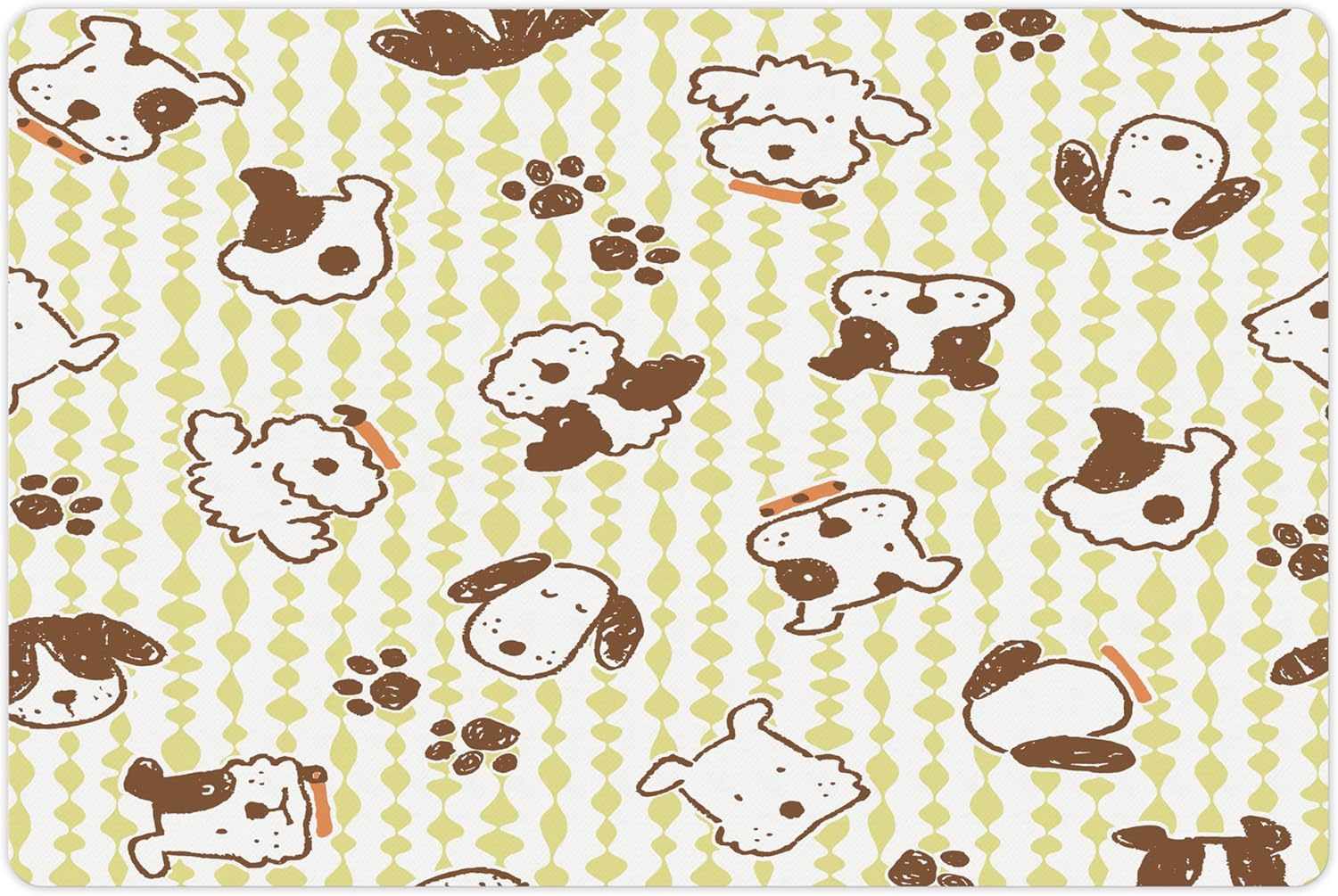 Lunarable Dog Pet Mat for Food and Water, Modern Pattern with Puppy Dogs and Paws Doodle Style Design Pet Animal Print, Rectangle Non-Slip Rubber Mat for Dogs and Cats, White and Green