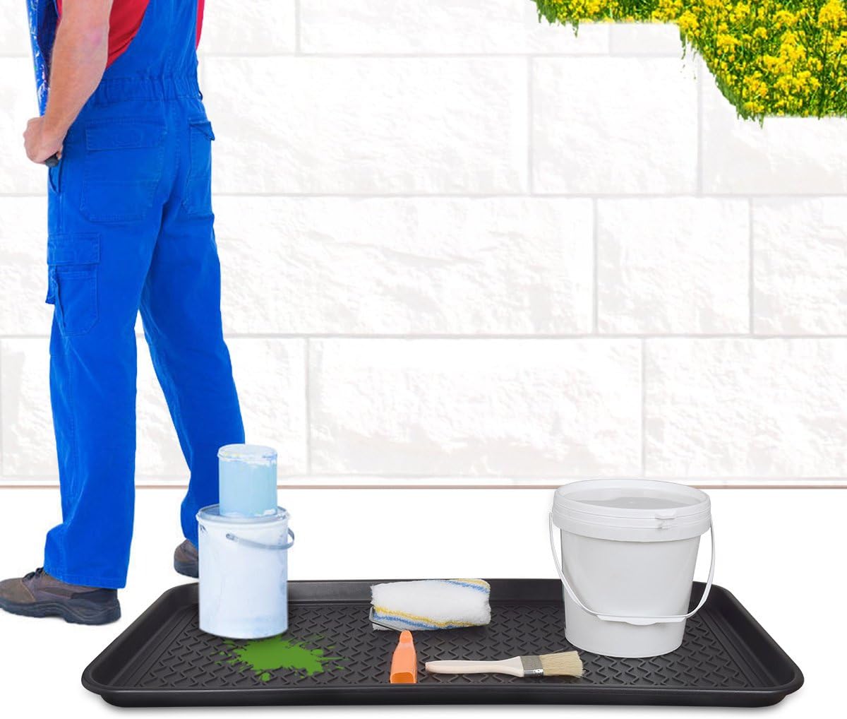 - ALL WEATHER USE- Raised 1.2” inch edges serve as a spill containment tray to protect your hardwood and carpet floors from mud, paint, pet or liquid stains. This tray can be used both indoors and outside. Keep one in your entryway or mud room to catch water from rain or snow and every day dirt. You also can keep one on your porch or deck to keep dirt and water from ever coming in your home.