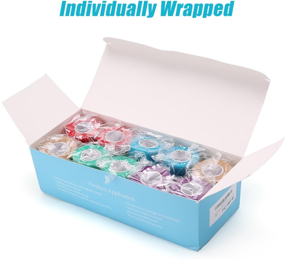 - ASSORTED VET WRAP TAPE: Totally 10 self-adhering bandage tapes, 2 red + 2 blue + 2 purple + 2 tan + 2 green offers great fun for decorating