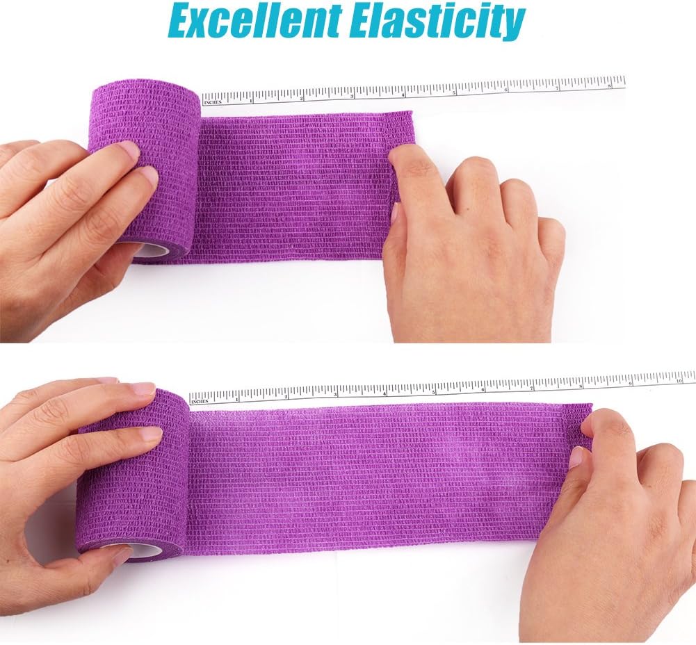 - COHESIVE TAPE: 3 inch x 5 yards self adhesive bandage tape adheres to itself, no clips or pins needed and will not stick to hair or skin; vet wrap tape will not loose by sweat or water
