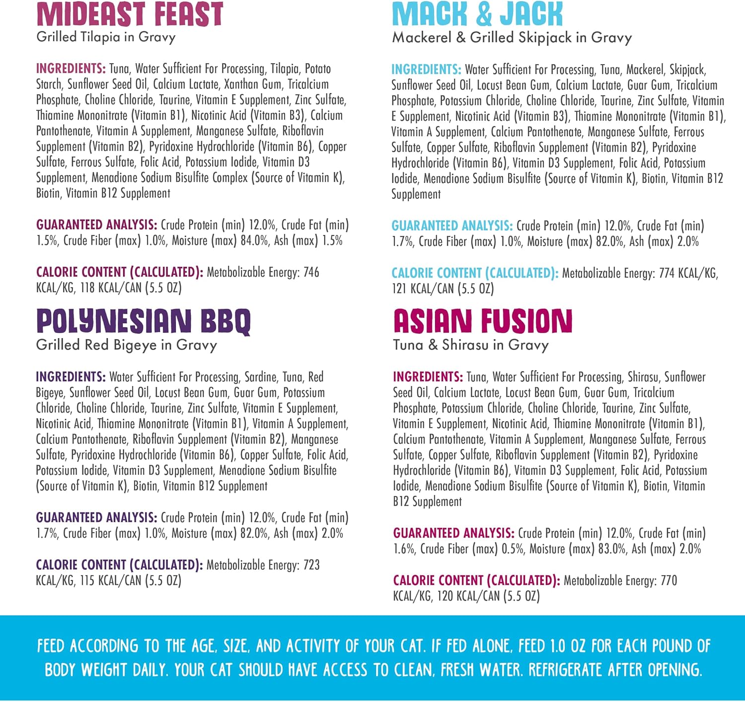 - Variety Pack includes 6 cans of each: Mideast Feast, Mack & Jack, Asian Fusion & Polynesian BBQ.