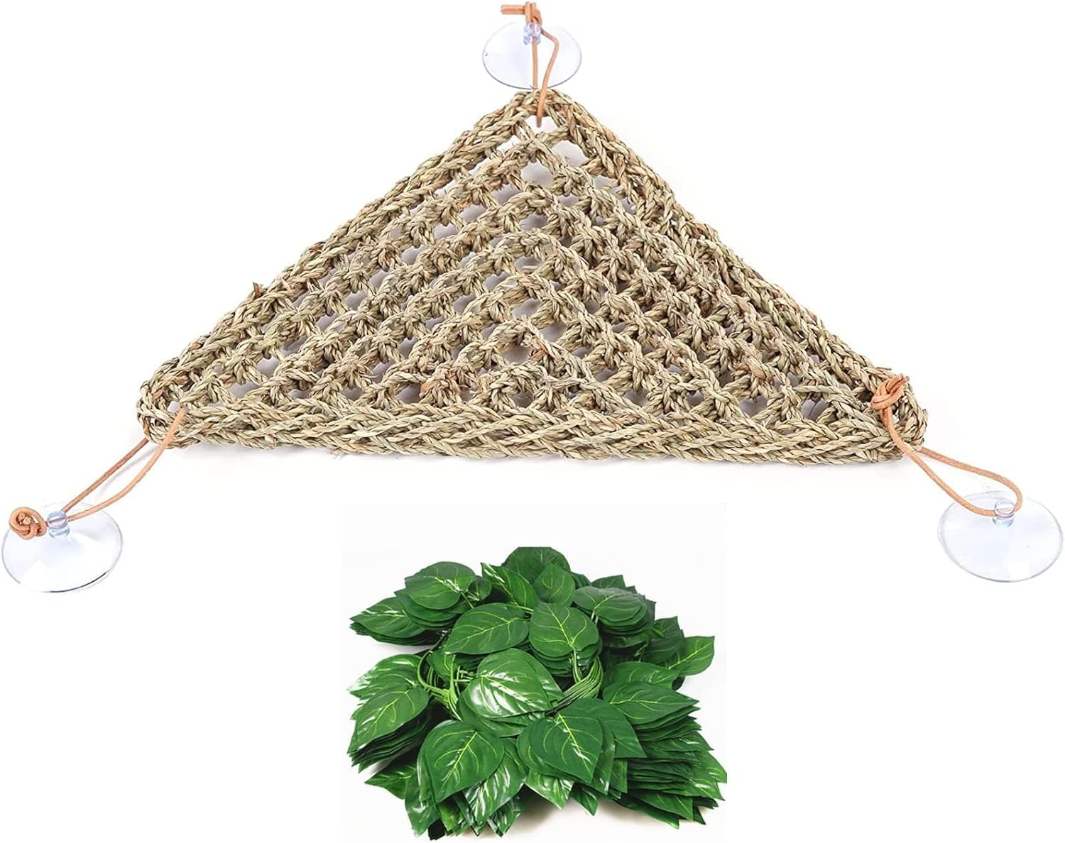 - The triangle seagrass bearded dragon hammock comes with 3 strong, large suction cups and hemp rope to fix the reptile hammock to the tank. The lizard hammock can be attached to the hammock for a bearded dragon tank of glass, plastic, or acrylic terrarium wall