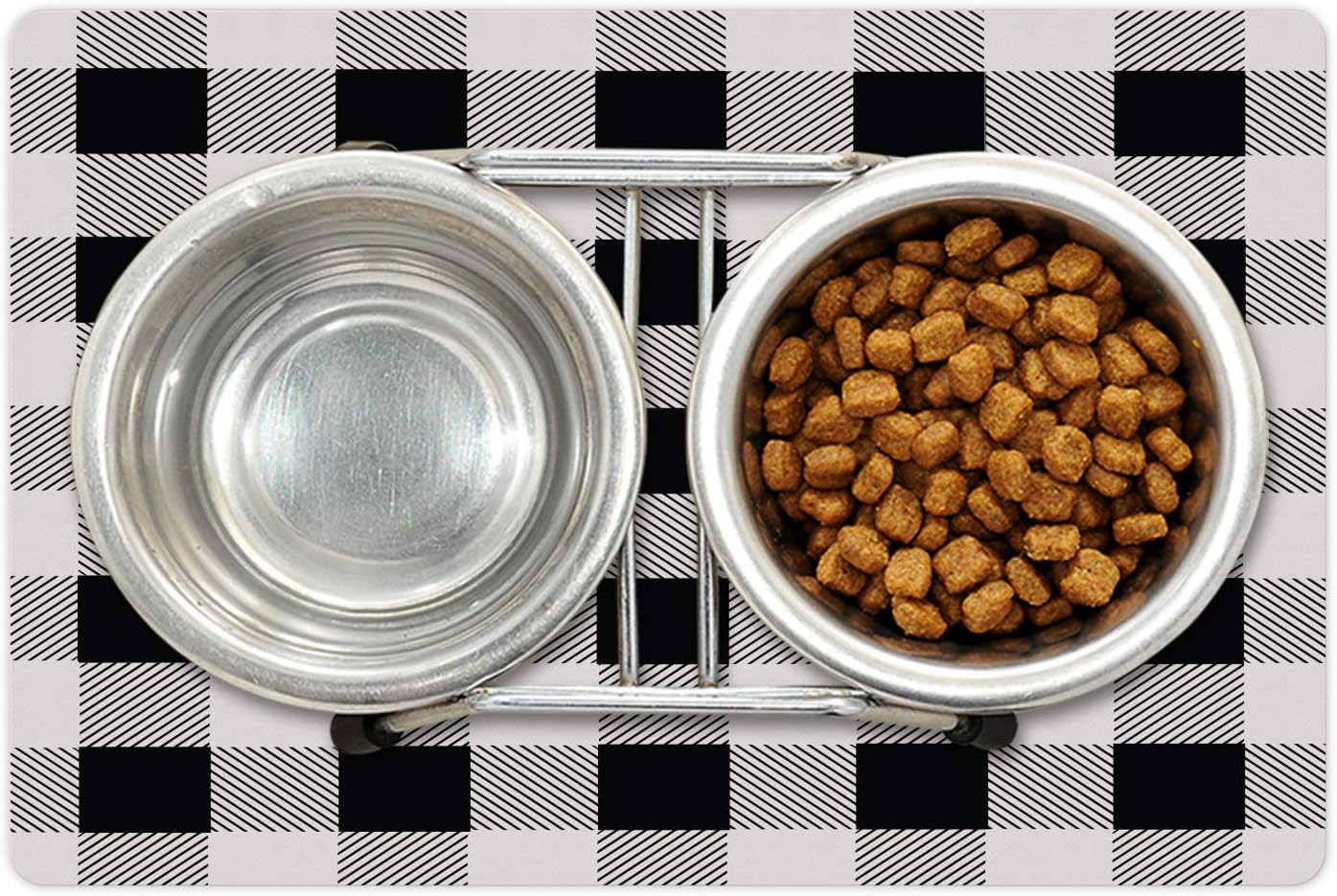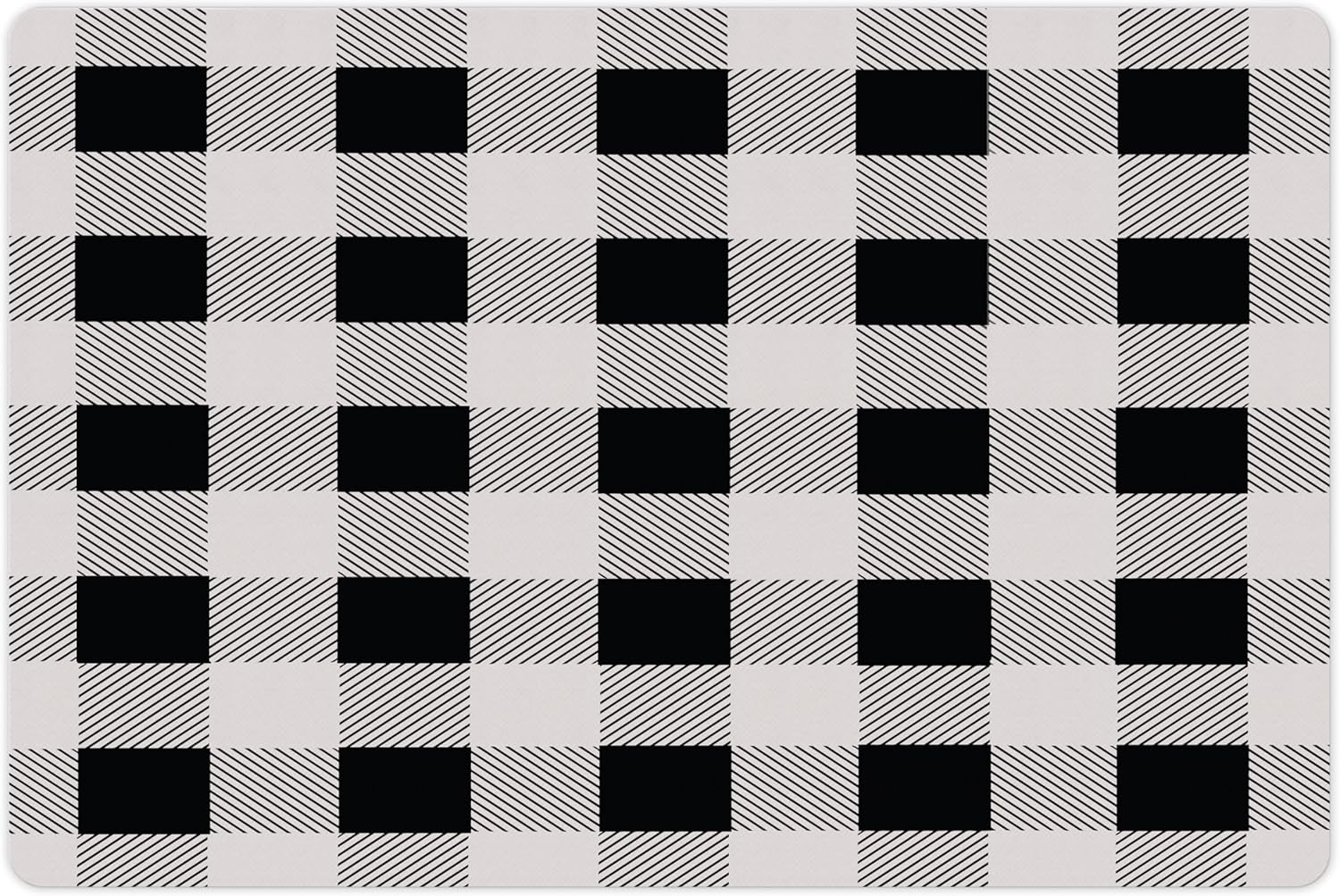 Lunarable Plaid Pet Mat for Food and Water, Monochrome Traditional Lumberjack Pattern Repating Checkered Squares Design, Non-Slip Rubber Mat for Dogs and Cats, 18" X 12", Grey Black