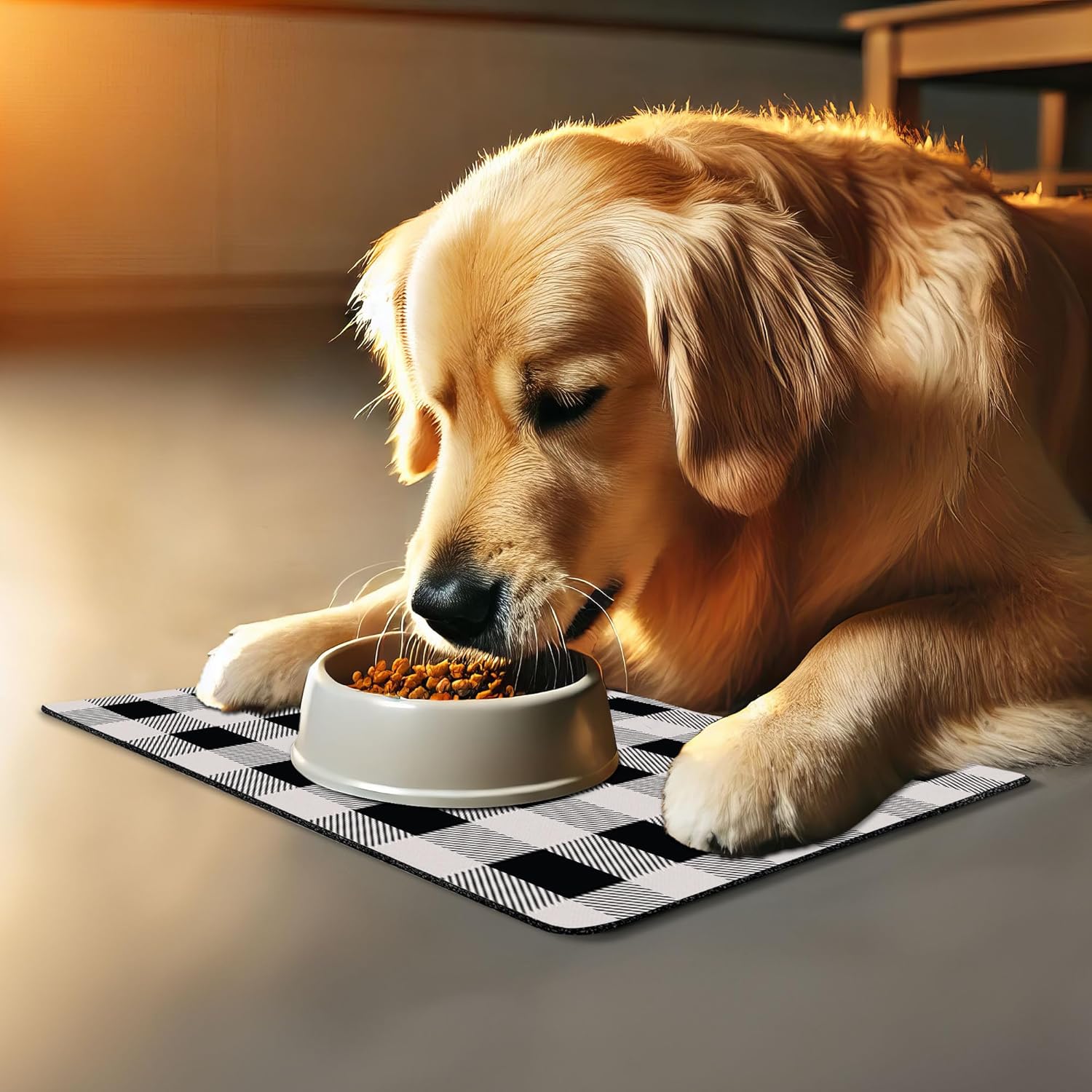 - Features - Fun prints and long-lasting colors. Find any theme and color you want to match your room decor or your pet’s personality. This pet feeding mat can even feature your cat's or dog’s favorite item or design, adding a cheerful touch to your pet’s feeding area.
