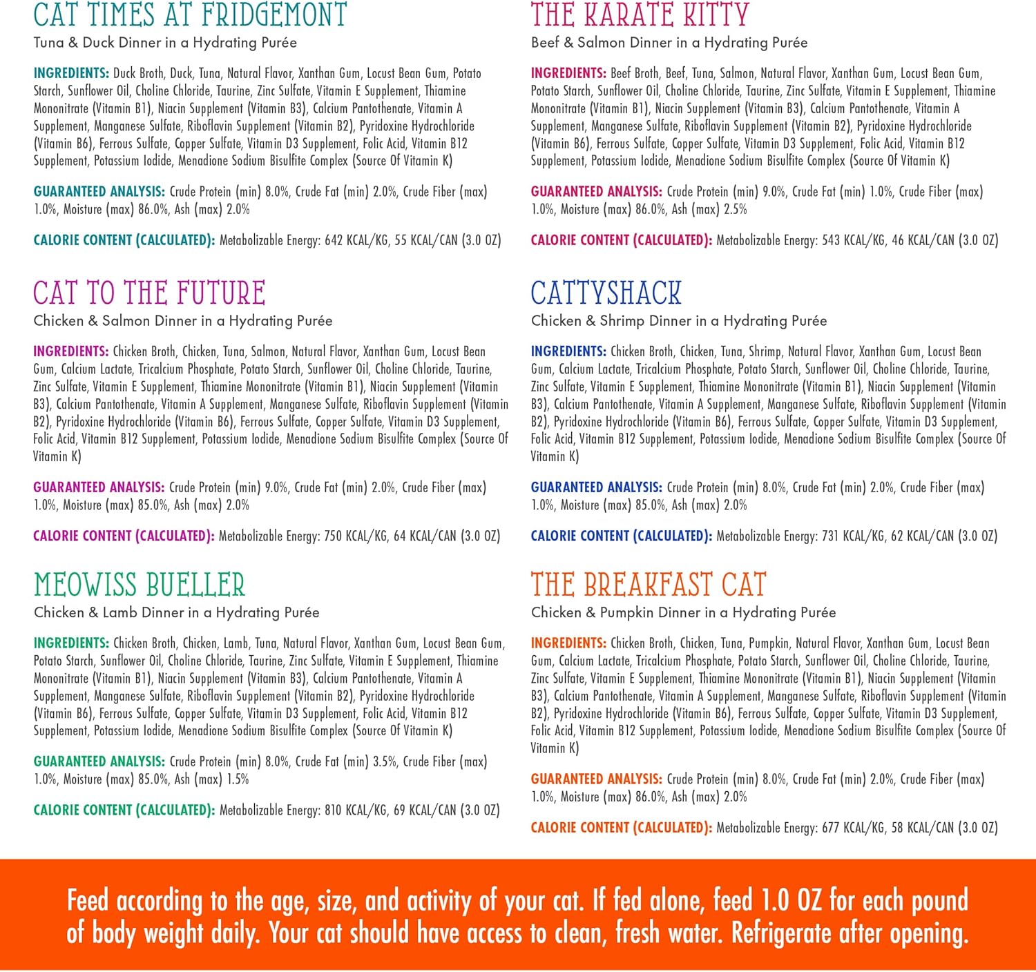- Variety Pack includes 2 of each: The Breakfast Cat, Cat to The Future, Meowiss Bueller, Cat Times at Fridgemont, The Karate Kitty, and Cattyshack.