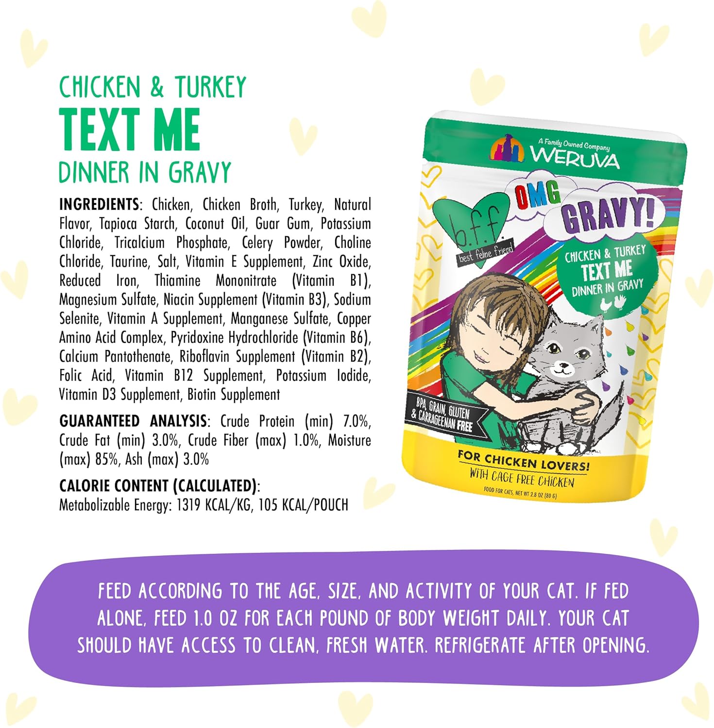 - B.F.F. OMG - Your Best Feline Friend will love these extra juicy flavors. Oh my Gravy!