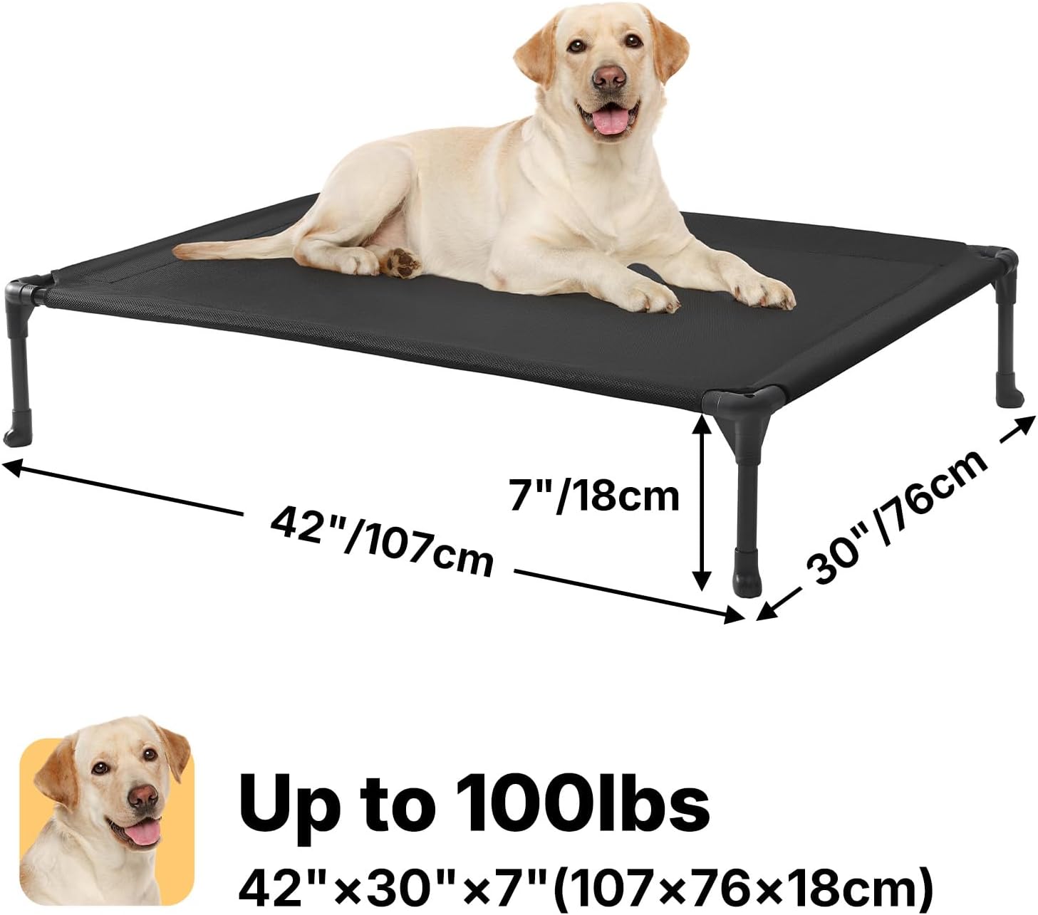 - Comfort: This elevated dog bed is made from Telsin fabric, which offers excellent breathability, providing a cool and comfortable resting environment for your pet. The elevated design of the raised dog bed isolates it from ground moisture, helping to prevent arthritis