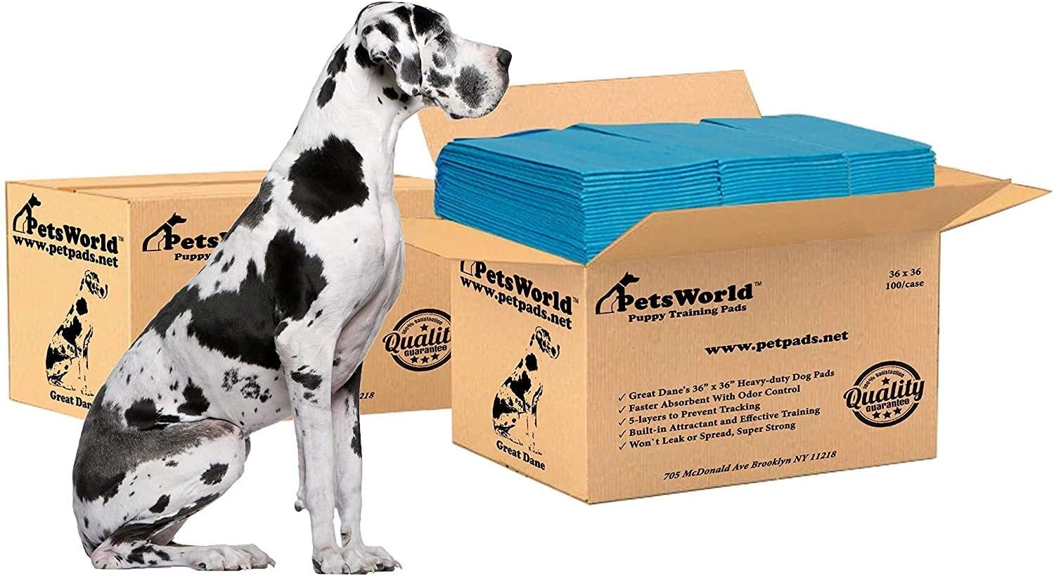 PETSWORLD Giant Dog Potty Pads, Odor-Eliminating, 36" x 36", Ultra Absorbent 5-Layer Leak-Proof Training Pads for Dogs & Cats (36x36, 200 Count)