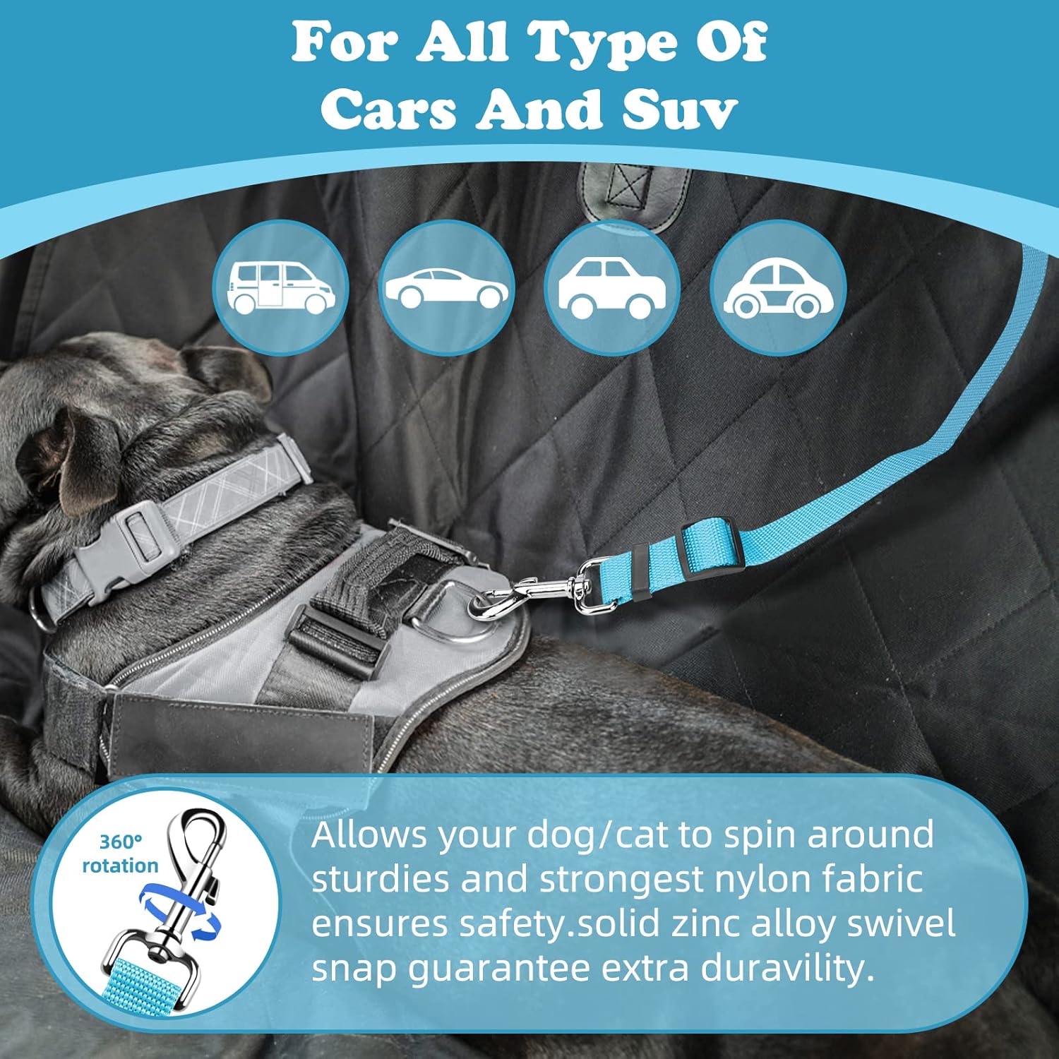 - EASY USE:The tangle-free nylon straps quickly and easily attaches to vehicle headrests. Safety strap is easily removed making it the perfect dog leash for your vehicle's back seat.