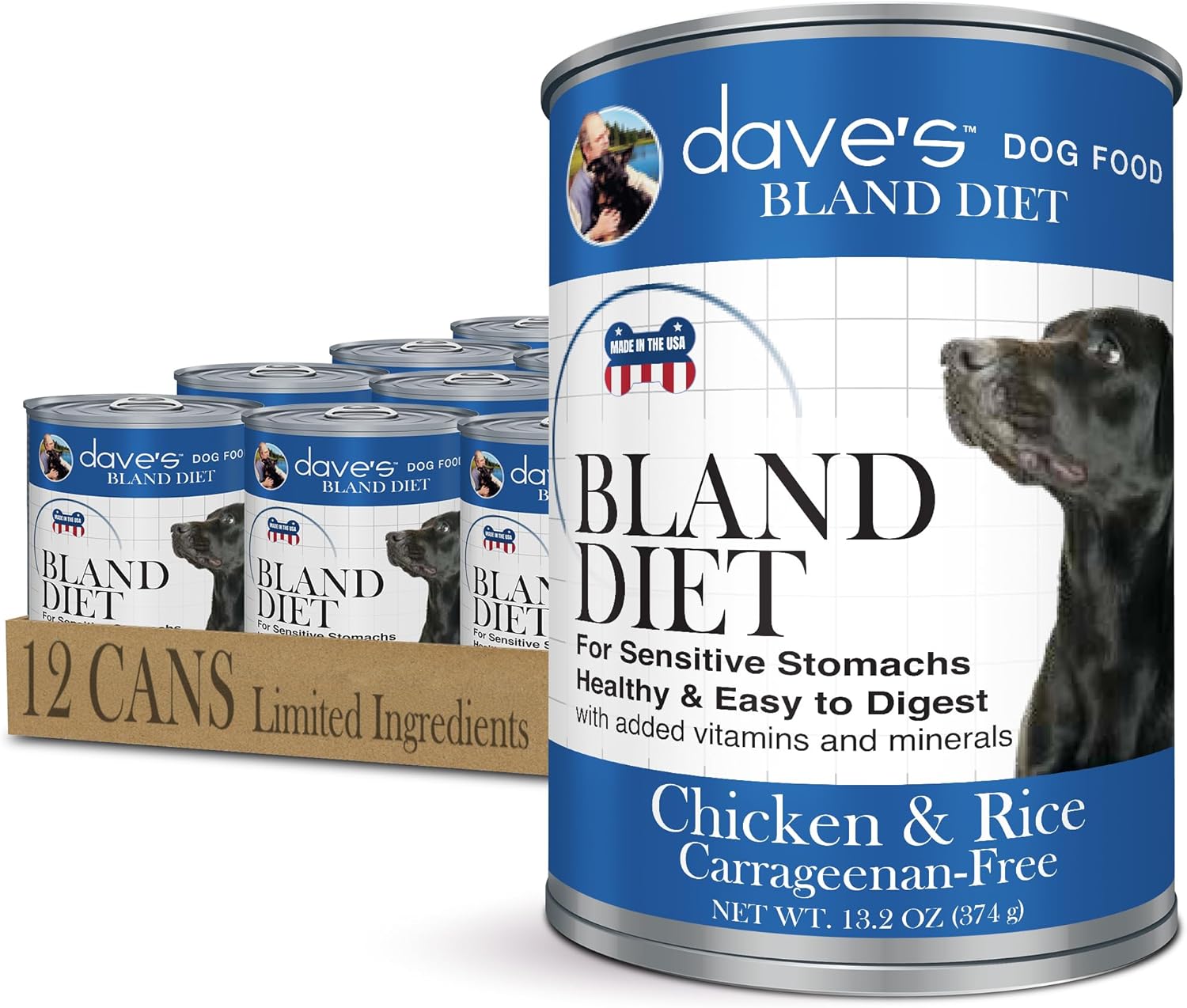 Dave's Pet Food Bland Diet Dog Food (Chicken & Rice), Sensitive Stomach, Easy to Digest, Gluten-Free, Digestive Care, Wet Canned, 13.2 oz (Case of 12)