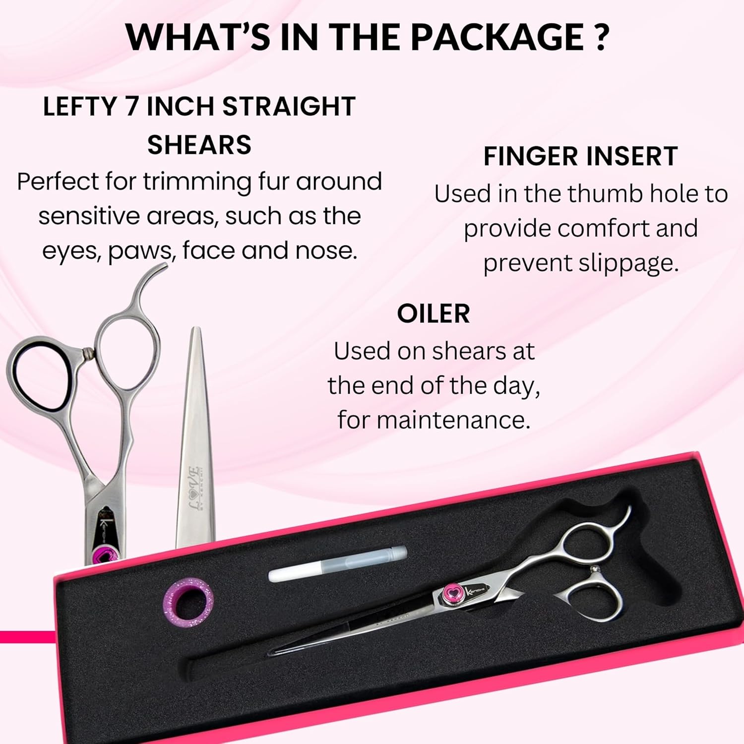 Kenchii Love Left Handed Dog Grooming Scissors, 7 Inch Straight Shears, Dog Scissors for Grooming, Professional Pet Grooming Scissors, Ergonomic & Comfortable