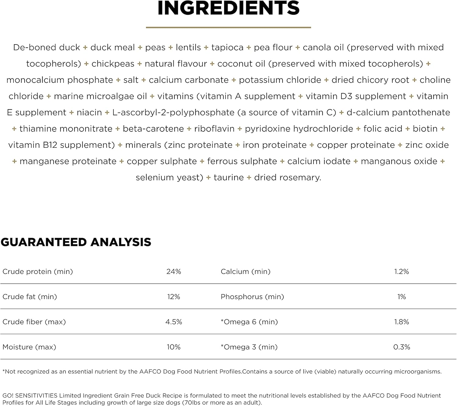 Go! Solutions Sensitivities Limited Ingredients, Grain-Free Dry Dog Food, Duck Recipe for Sensitive Stomach, 12 lb Bag