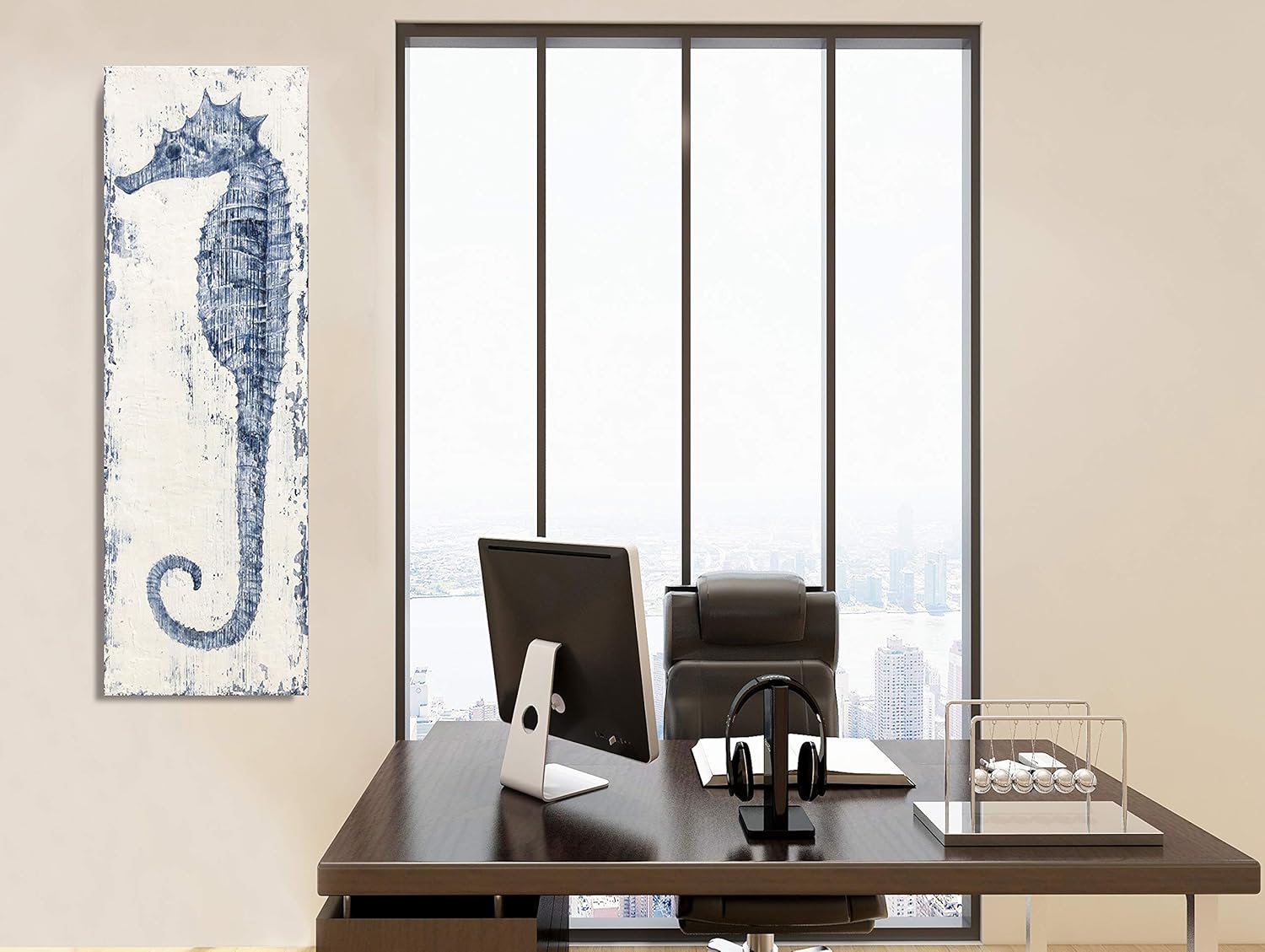 - GALLERY WRAPPED CANVAS. This Classical Blue Seahorse Canvas Wall Art Painting Pictures is wrapped around a traditional wood frame for a gallery-worthy look, with hanger included, Is ready to hang.