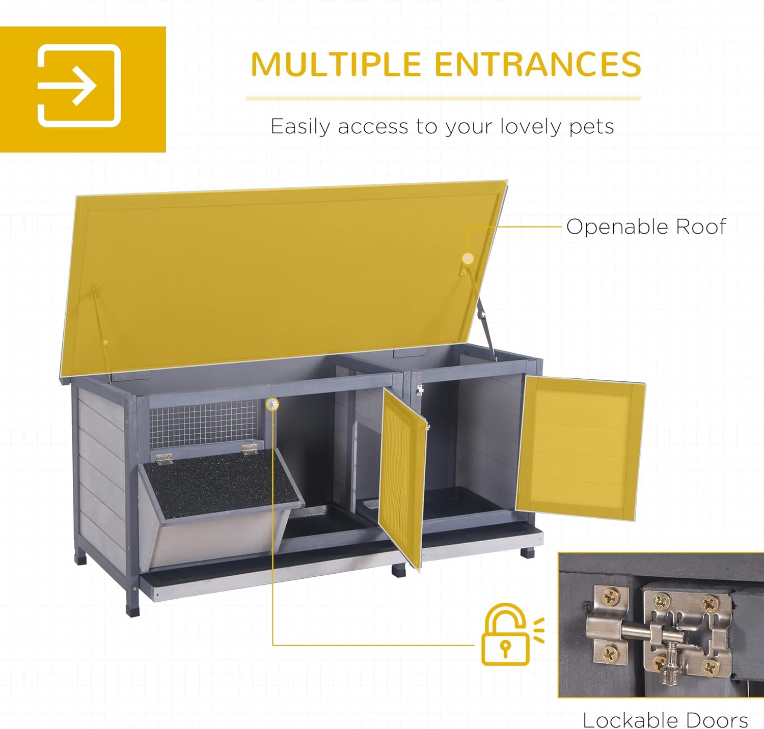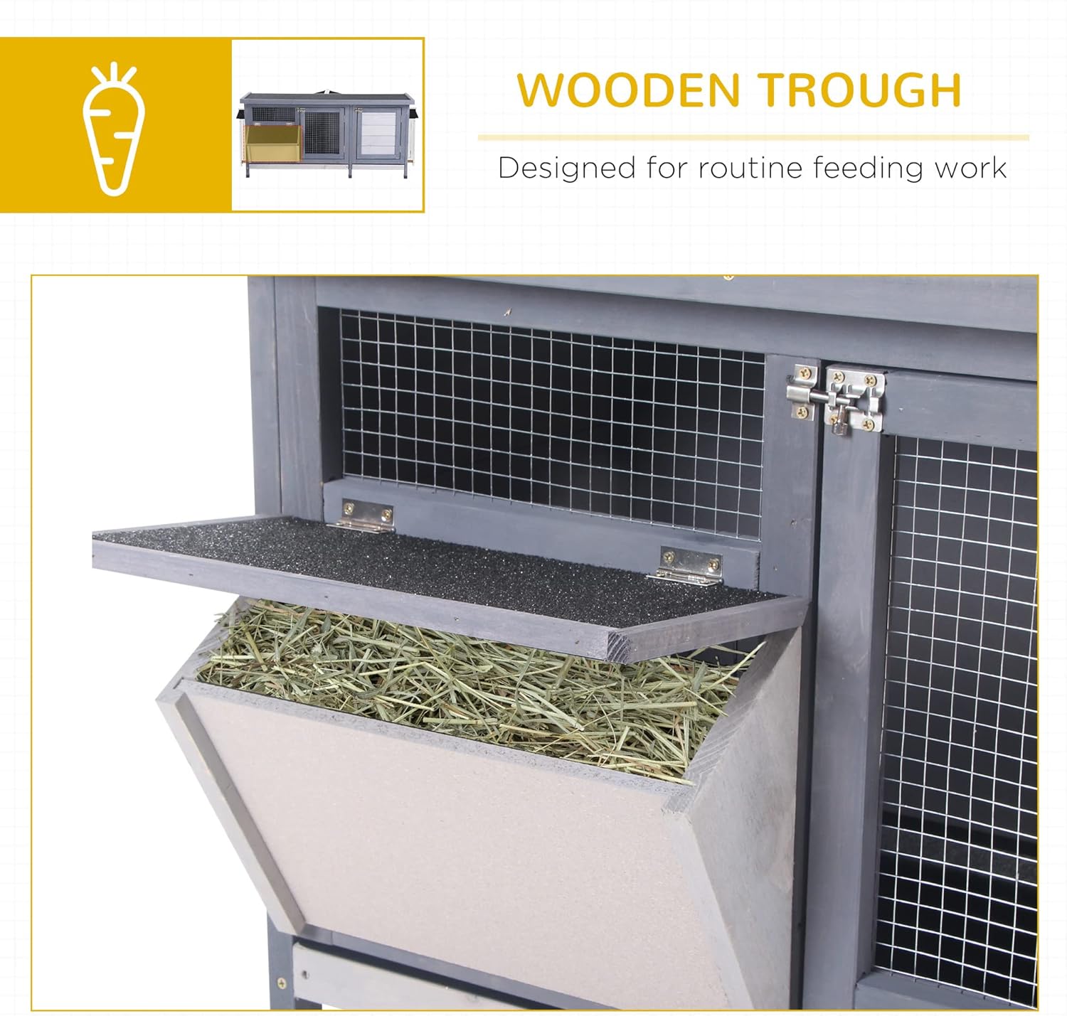 - Easy Feeding: The rabbit house includes a feeding trough so you can put grass or other pet food in it for your pet to enjoy at their leisure.