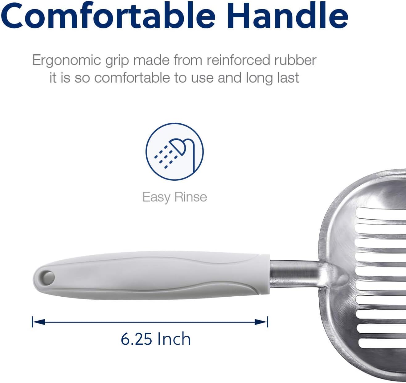 - [Functions]: The sharp edge helps to loosen clumps. The sifter area holds wet clumps and lets clean litter pass through easily. The long handle keeps you away from cat’s waste. It is designed to keep litter box clean and save you loads of cat litter.