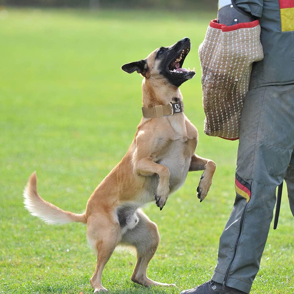 TSPRO Tactical Dog Collar 1.5 Inch Wide Thick Dog Collars with Heavy Duty Metal Buckle, Durable, Strong, Adjustable for Medium to Large Dogs (Khaki L)