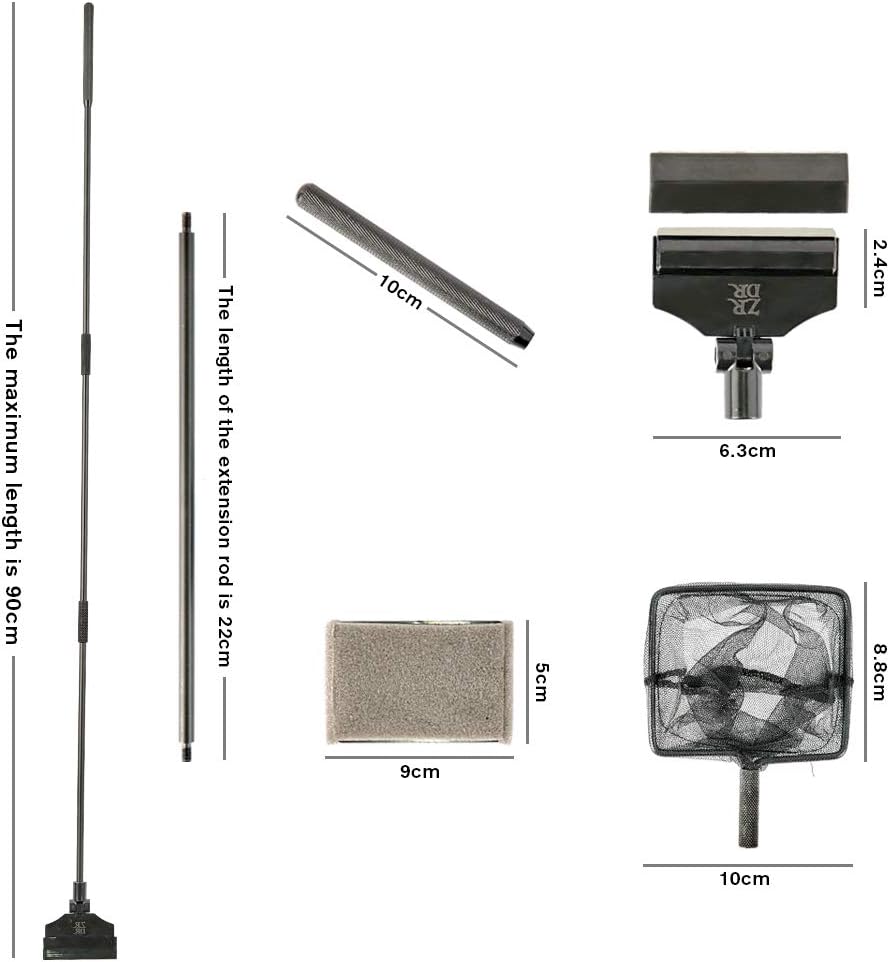 ZRDR Stainless Steel Algae Scraper Aquarium Cleaning Tool for Glass Aquariums, Including Algae Scraper, Sponge Pad, Fish Net, Cleaning Brush, Adjustable Length, Durable, Does Not Hurt The Fish Tank