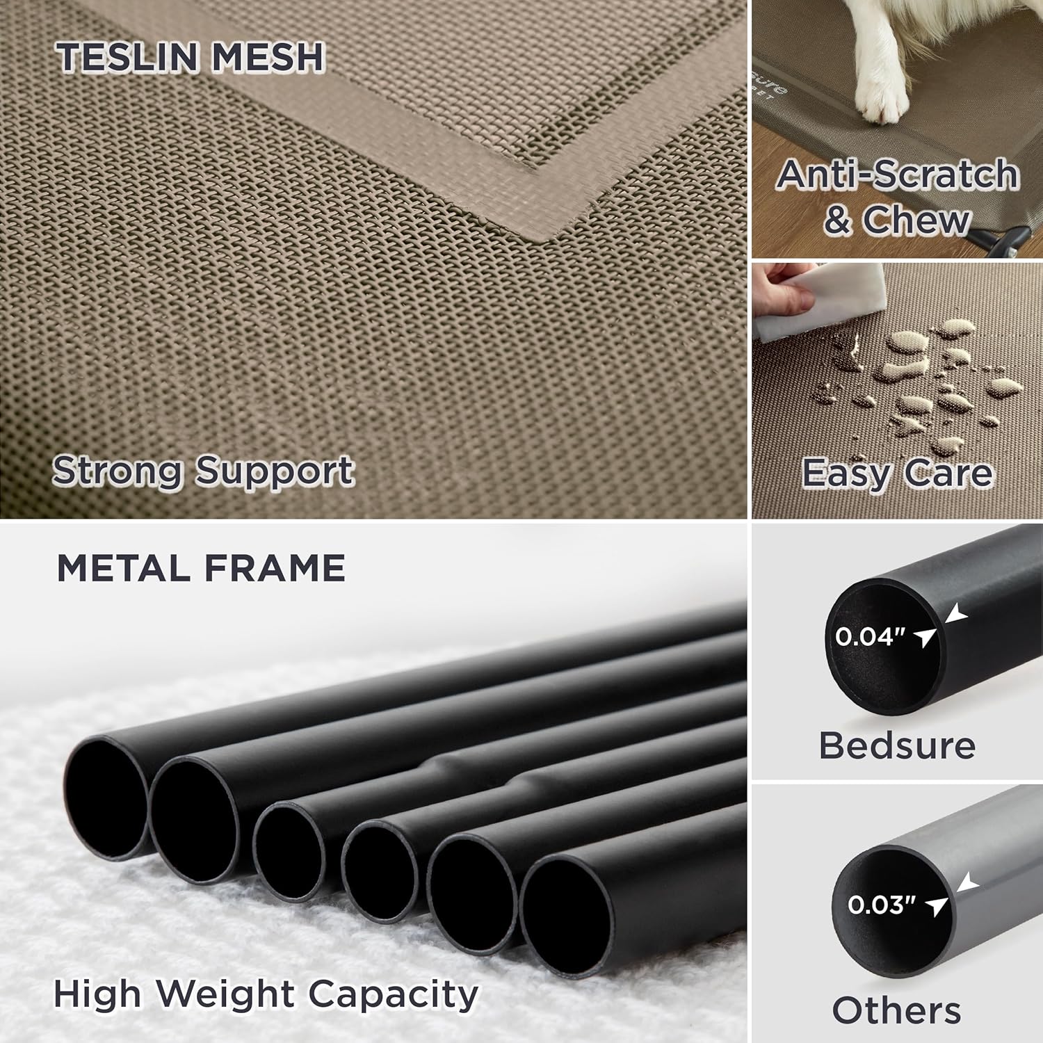 Bedsure Outdoor Elevated Dog Bed Large Sized Dog, Portable Indoor & Outdoor Cooling Raised Cot Pet Hammock Bed with Skid-Resistant Feet, Frame with Breathable Mesh, Brown, 49 inches