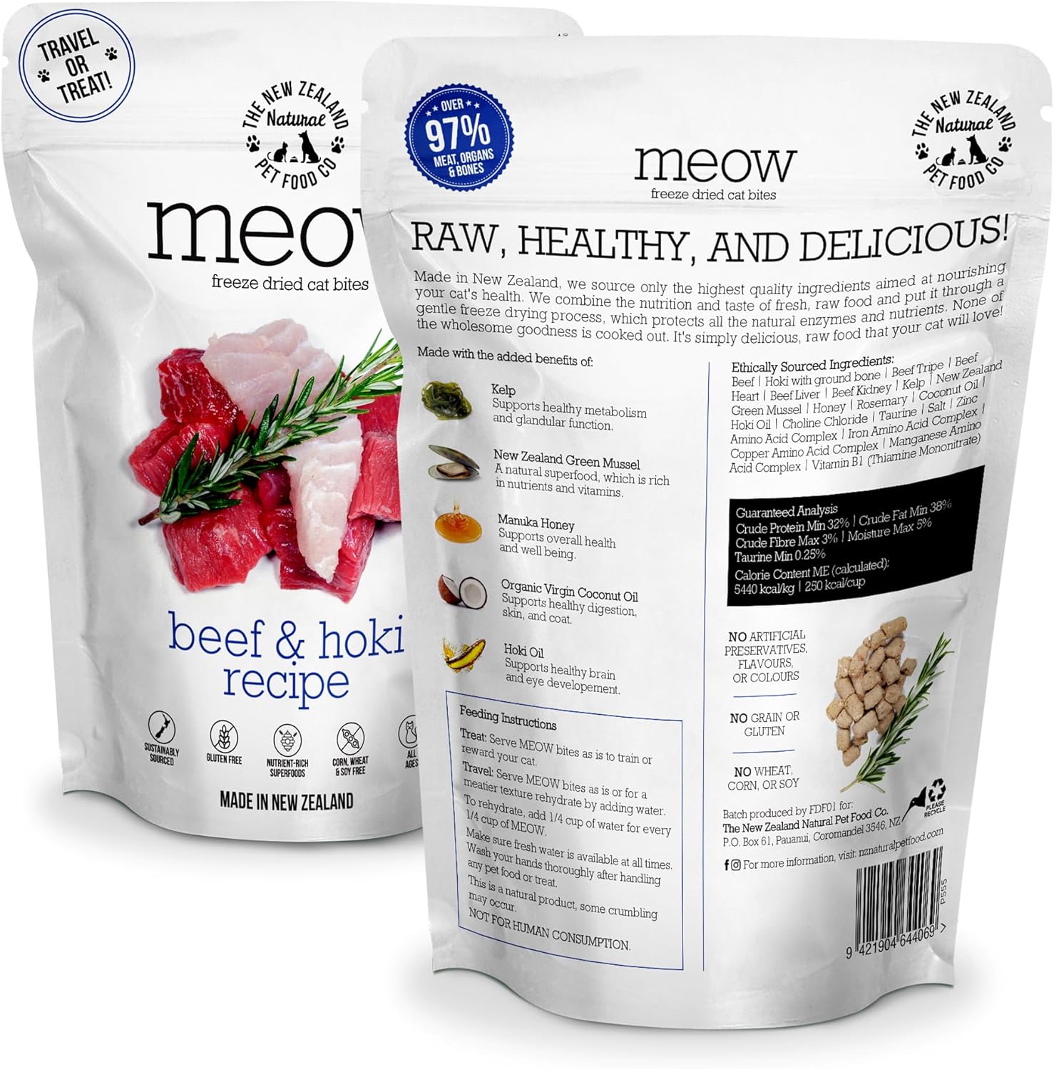 Meow Freeze Dried Cat Food - Beef & Hoki Recipe, High Protein Cat Treats, Meals & Toppers, Dry Cat Food,1.76 oz