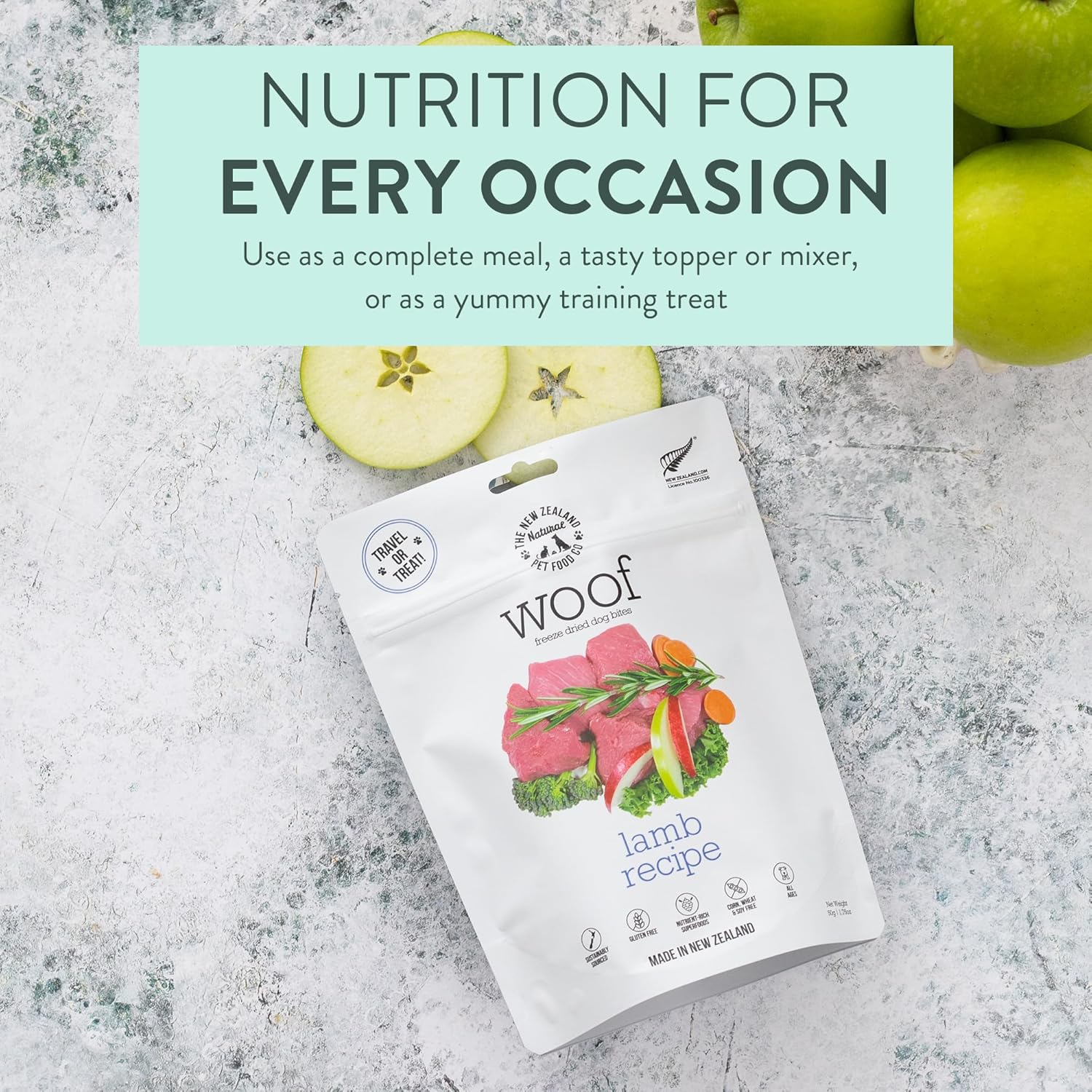 Woof Freeze Dried Dog Food - Lamb Recipe, High Protein, Dog Food Topper & Dog Treats, All Life Stages, 1.76 oz