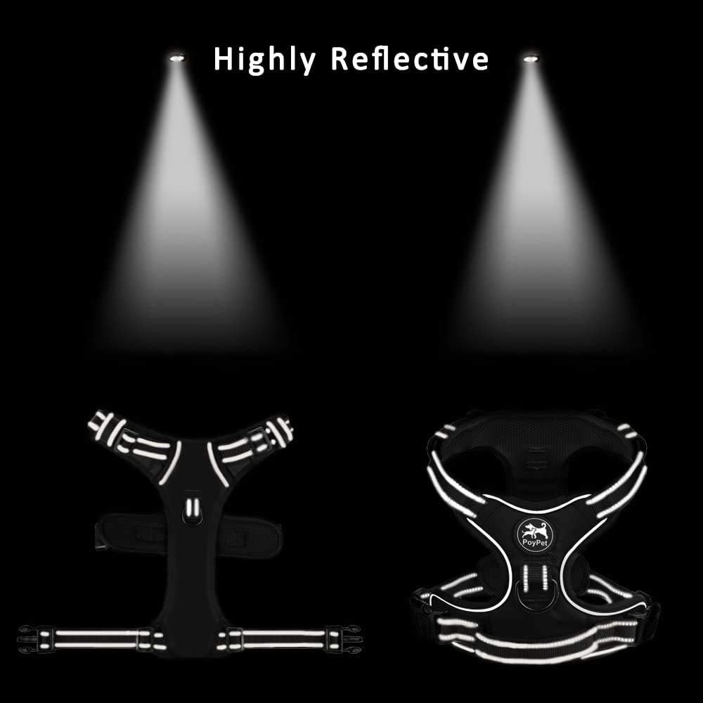 PoyPet No Pull Dog Harness, Reflective Comfortable Vest Harness with Front & Back 2 Leash Attachments and Easy Control Handle Adjustable Soft Padded Pet Vest for Small to Large Dogs (Pink,XS)