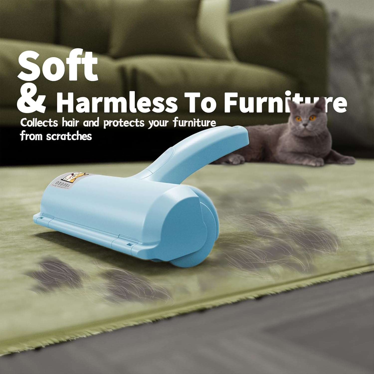 ORDORA Pet Hair Remover for Furniture/Bed, Reusable Dog Hair Remover Roller for Dog & Cat, Self-Cleaning, No Adhesive or Sticky Tape Needed, Perfect Fur Remover for Couch (Blue)