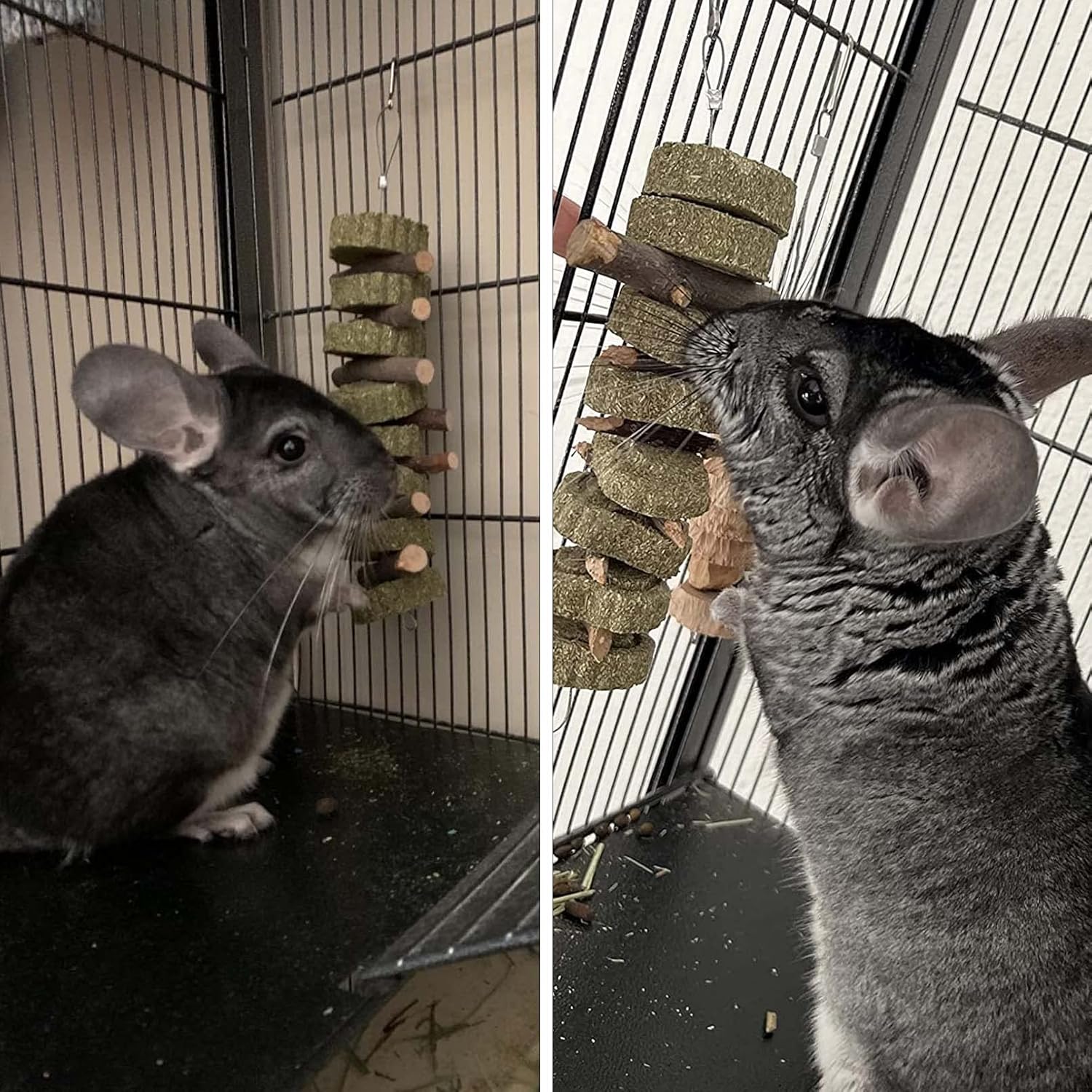 - Keep Teeth Healthy:The teeth of rodents have they growing throughout lives,These natural apple chew sticks and timothy grass cakes are good for teeth grinding to prevent teeth from growing fast and long can help your pets keep their teeth and gums healthy.Chinchilla chew toy can transfer pets attention and prevent pets from chewing cages,sleeping bed