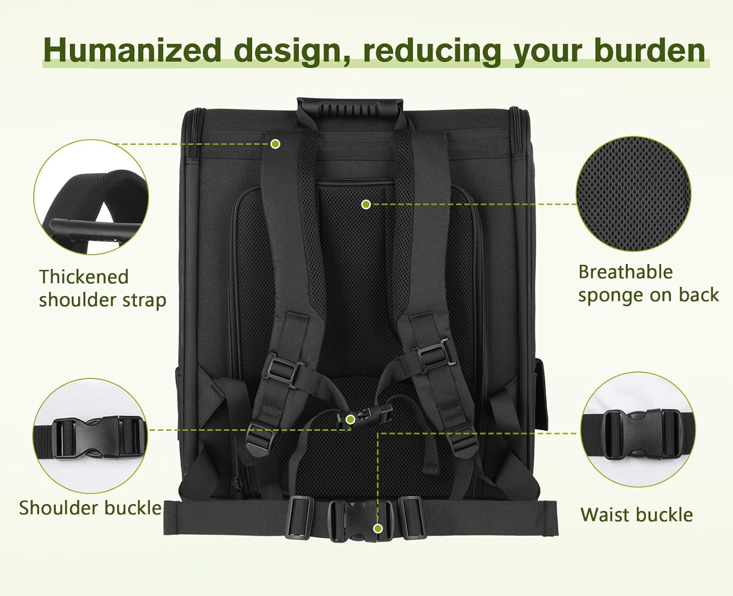 - 【 ERGONOMIC DESIGN 】: The widened & padded shoulder straps and back provide support and help reduce load and increase comfort. 2 retractable buckles on the top and bottom of the cat backpack to prevent shoulder strap deviation and maintain the stability of the dog carrier.