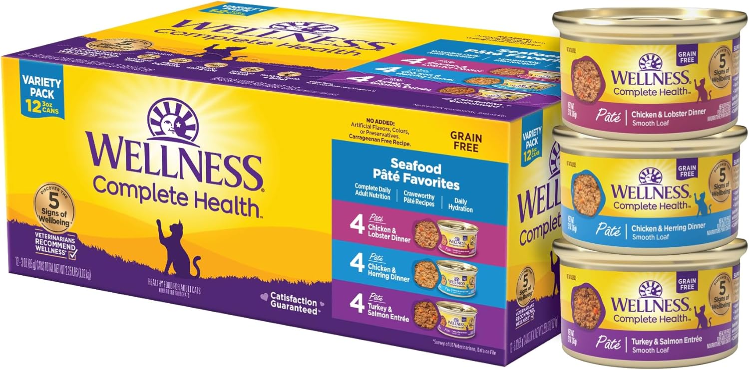 - COMPLETE & BALANCED NUTRITION: Created by nutritionists & veterinarians, each Wellness(r) recipe is carefully crafted to provide the necessary protein-rich, daily nutrition from natural ingredients that your cat is sure to love. Catisfaction Guaranteed.