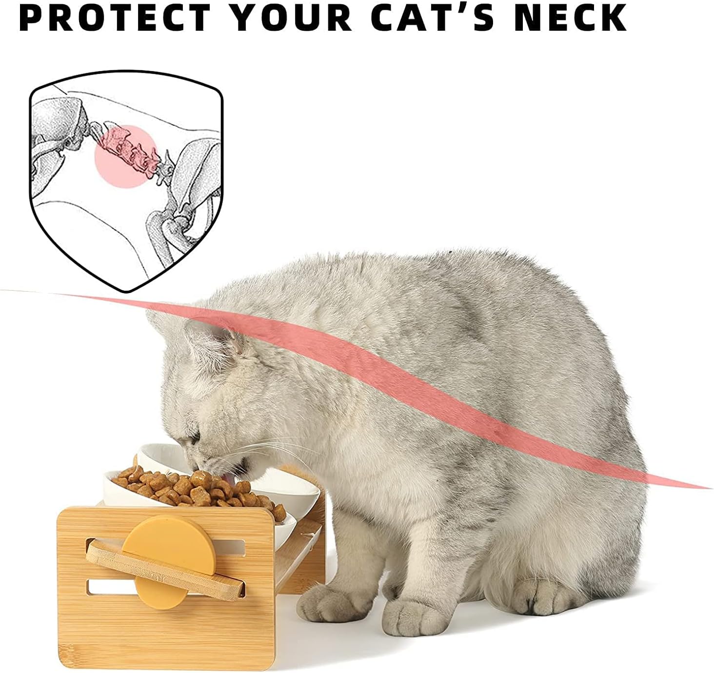 - FOOD GRADE CERAMIC BOWLS - Ceramic material is sturdy, rust-free and harmless to cats. And the natural bamboo holder is coated with varnish, which is waterproof and durable