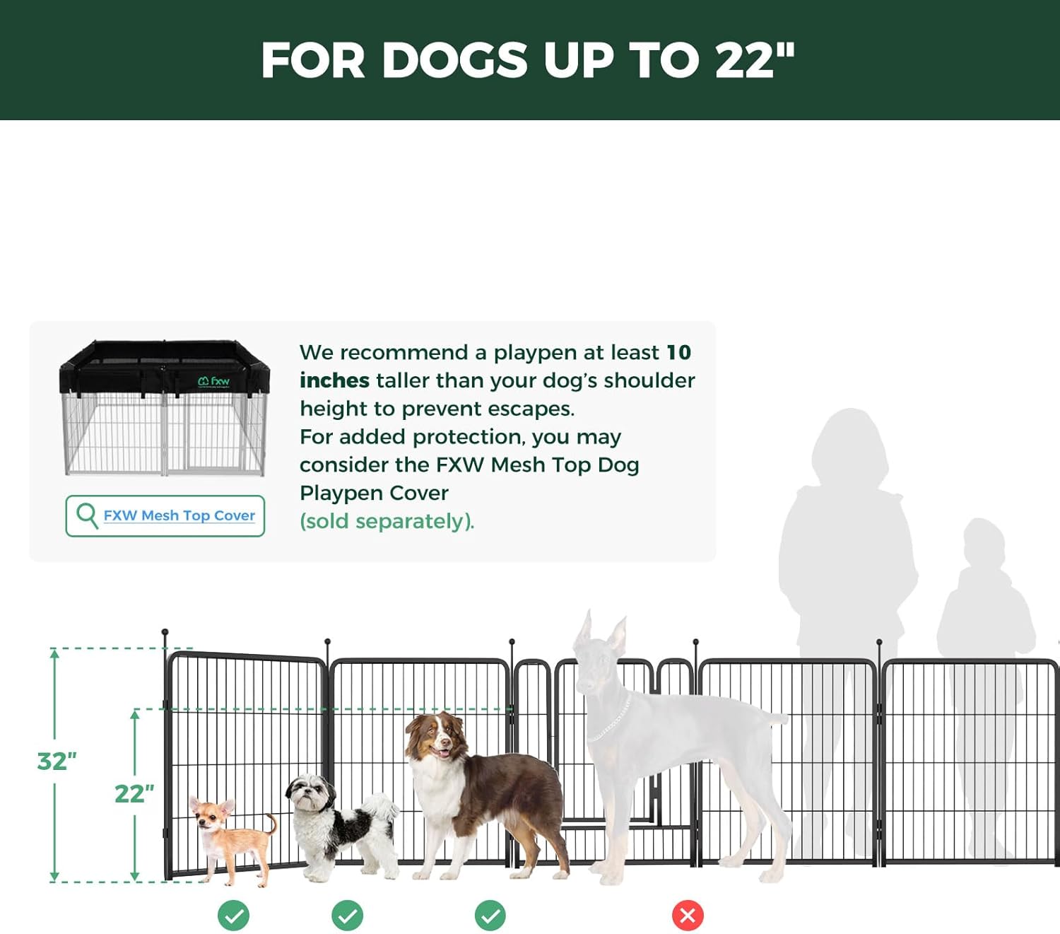 FXW Rollick Unleashed Dog Playpen for Indoor, Yard, RV Camping, 32 inch 16 Panels for Small and Medium Dogs, Black│Patented