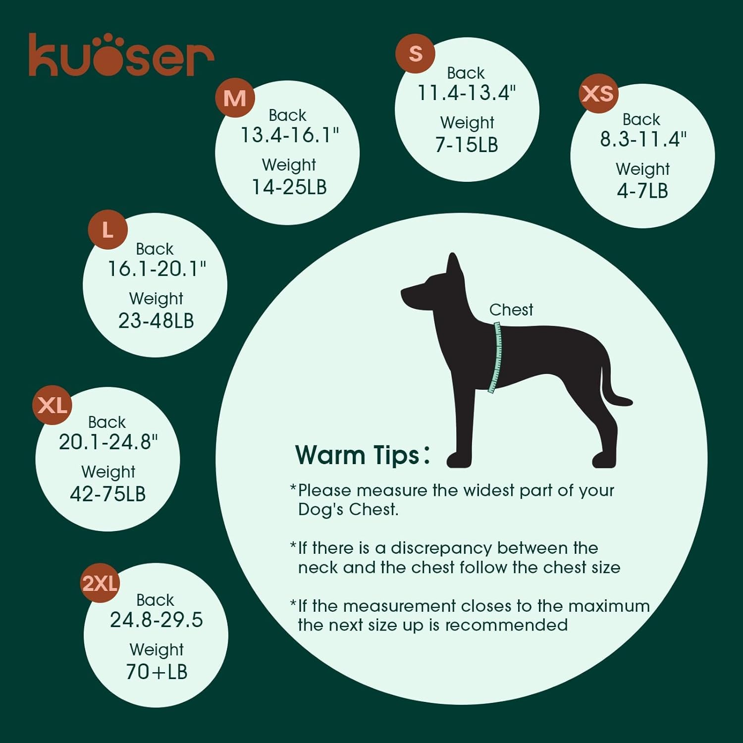 - SIZE GUIDE: X-Small (Back:8.3-11.4'', Weight:4-7 LB), Small (Back:11.4-13.4'', Weight:7-15 LB), Medium (Back:13.4-16.1'', Weight:14-25 LB), Large (Back:16.1-20.1'', Weight:23-48 LB), X-Large (Back:20.1-24.8'', Weight:42-75 LB), XX-Large (Back:24.8-29.5'', Weight:70+ LB) Please prioritize BACK LENGTH over WEIGHT