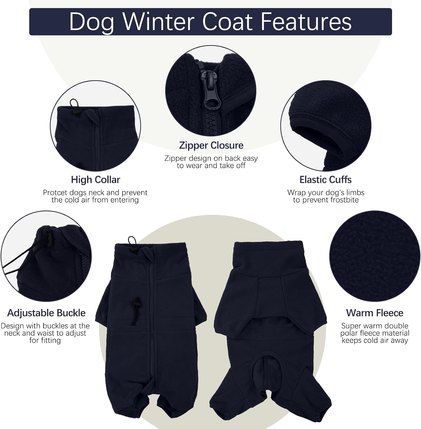 - Warm Material: The dog full body coat is made from thick polar fleece; soft and warm; resistant to falling off or fluffing; offers strong elasticity; Keep your furry dog feel as comfortable as possible, and has a strong warmth in the winter